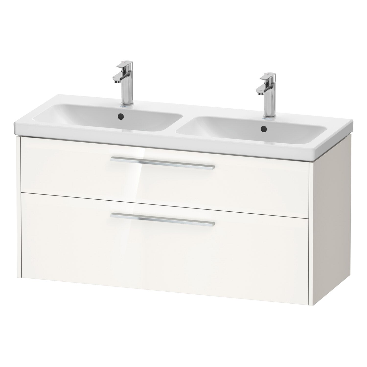 Duravit D-Code Waschtischunterschrank 120 cm mit Keramik-Doppelwaschtisch, mit 2 Auszügen, Griff chrom