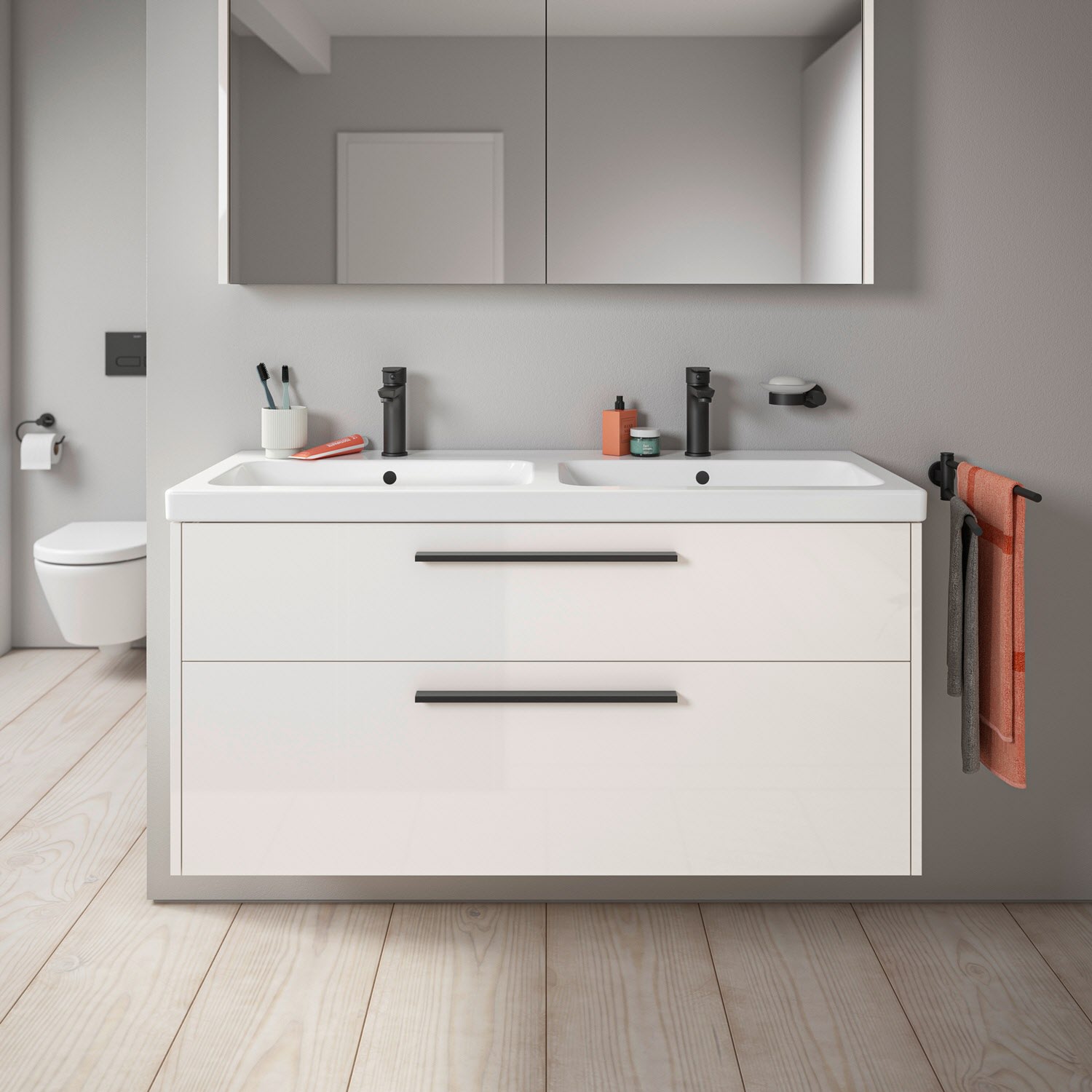 Duravit D-Code Waschtischunterschrank 120 cm mit Keramik-Doppelwaschtisch, mit 2 Auszügen, Griff schwarz