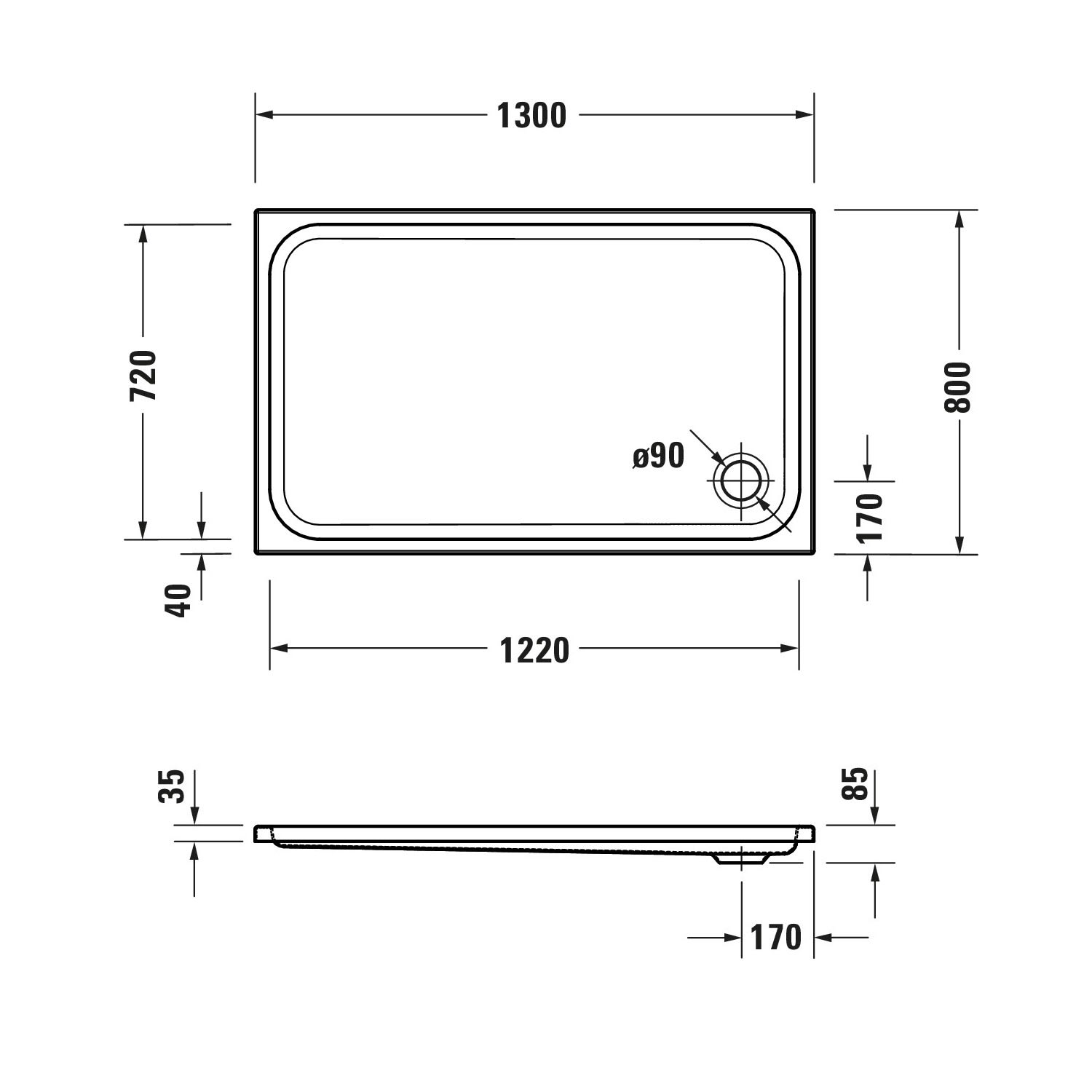 Duravit D-Code Rechteck Duschwanne 130 x 80 cm mit Antislip