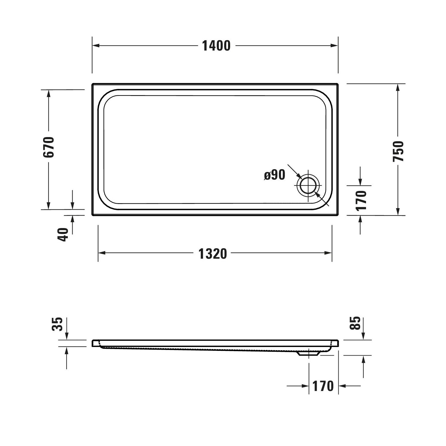 Duravit D-Code Rechteck Duschwanne 140 x 75 cm mit Antislip
