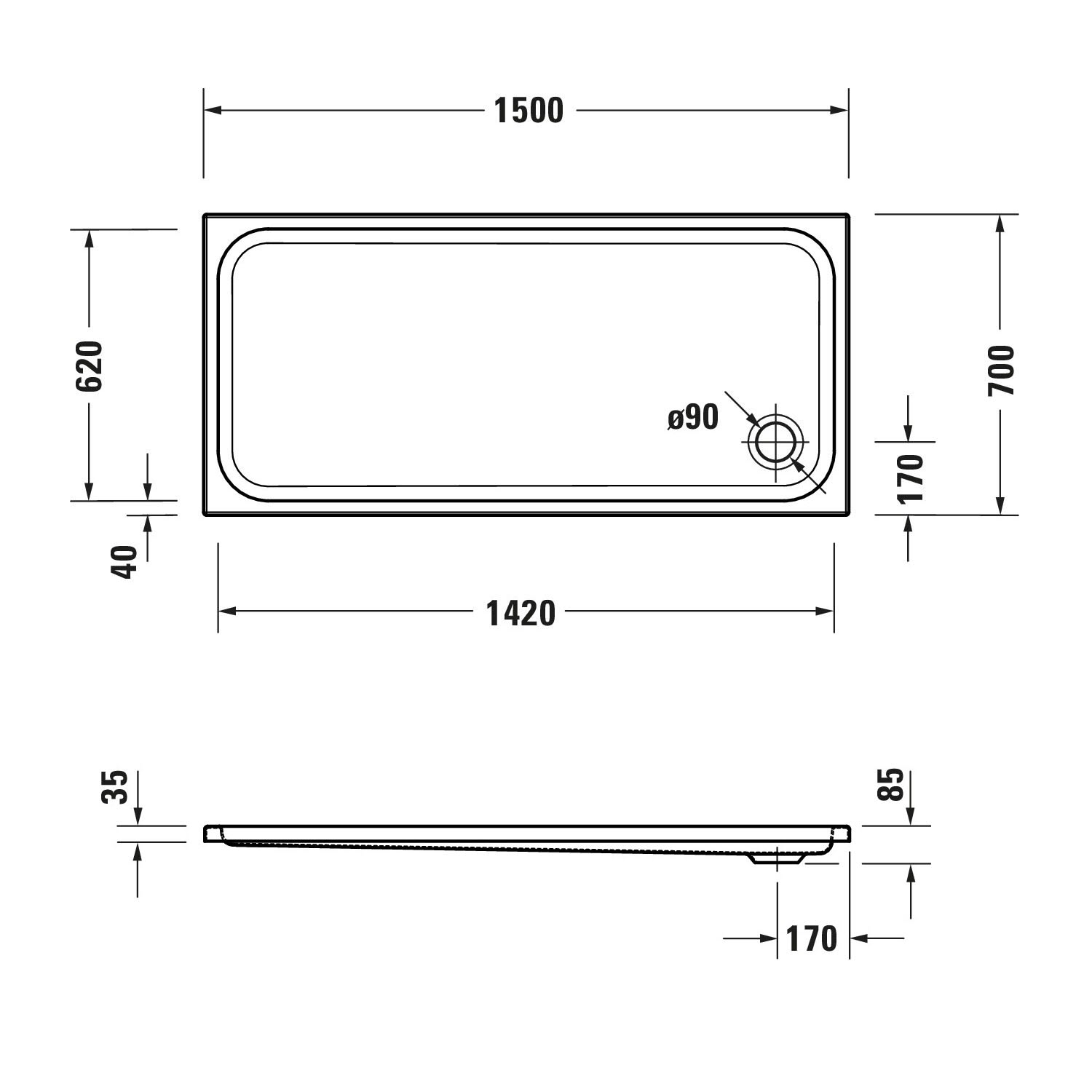 Duravit D-Code Rechteck Duschwanne 150 x 70 cm