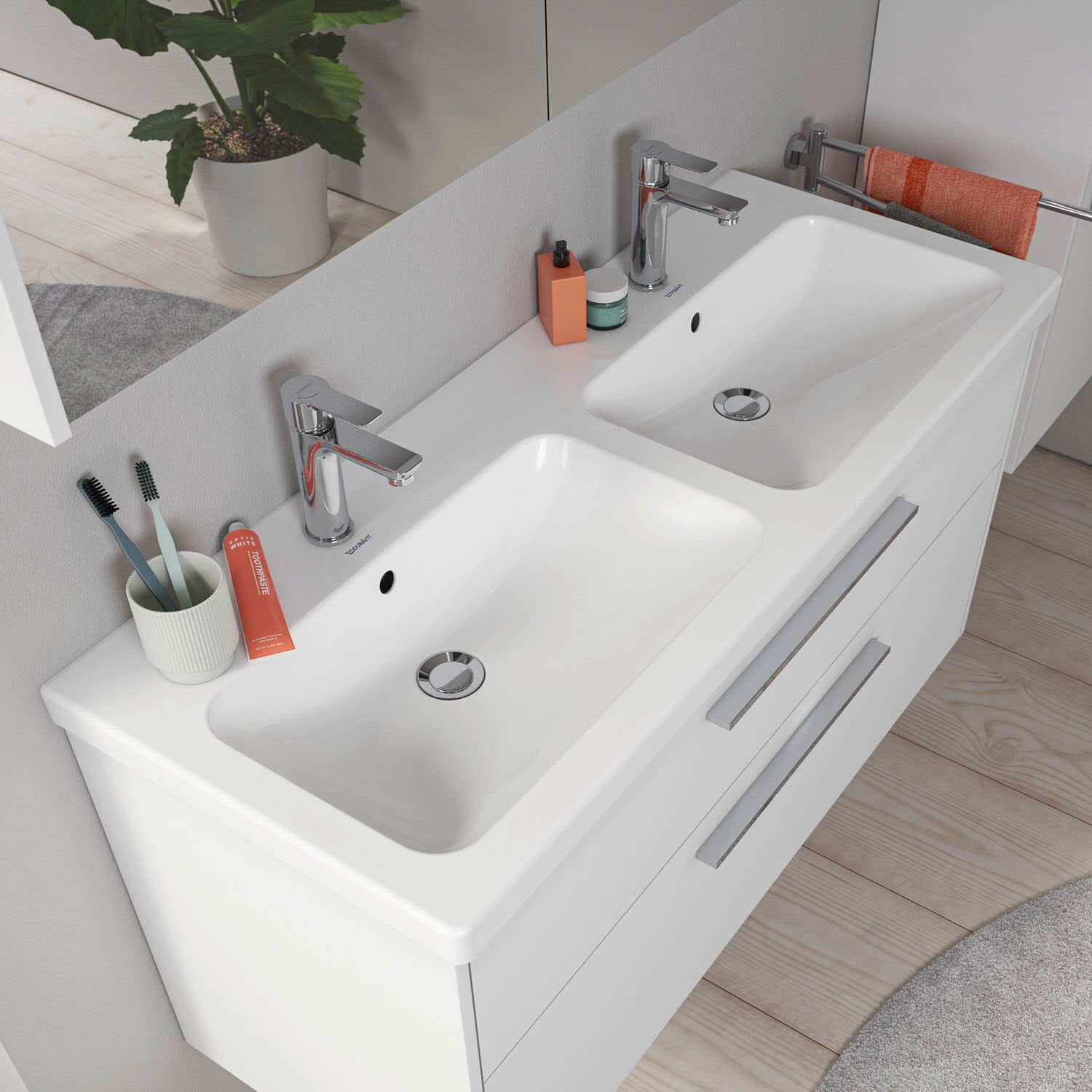 Dieser Doppelwaschtisch aus der Serie D-Code, ersinnt vom renommierten Designer sieger design, bietet eine stimmige Kombination aus Eleganz und Raumangebot. Für alle Familienmodelle, die gemeinsam den Tag beginnen, oder Paare, die nebeneinander ihre Rituale genießen möchten. Ein Ausdruck von zeitloser Schönheit und Funktion.