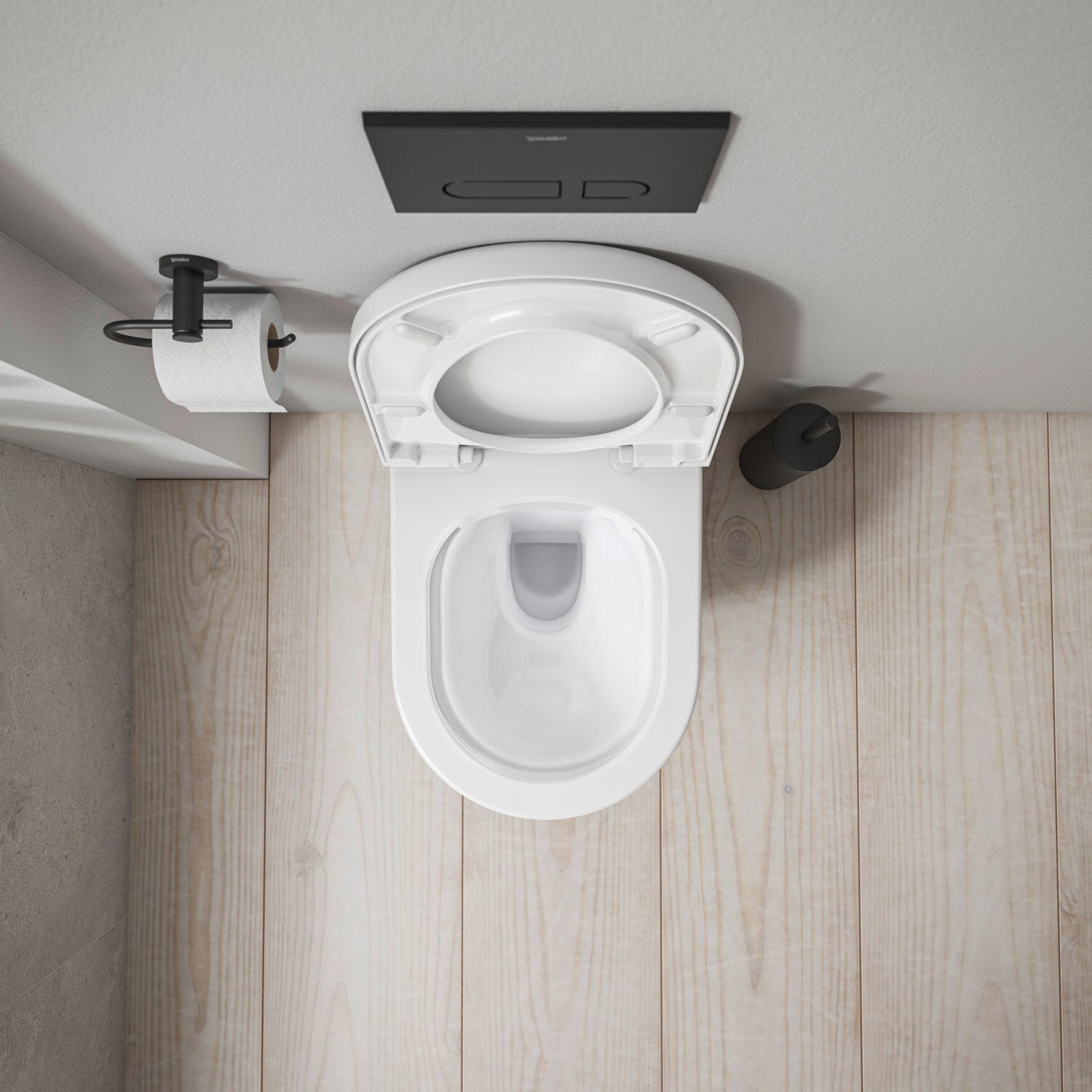 - Offener Spülrand Duravit Rimless® mit dynamischer Wasserführung: Hygienisch einwandfreie Spülergebnisse auch bei kleinen Wassermengen