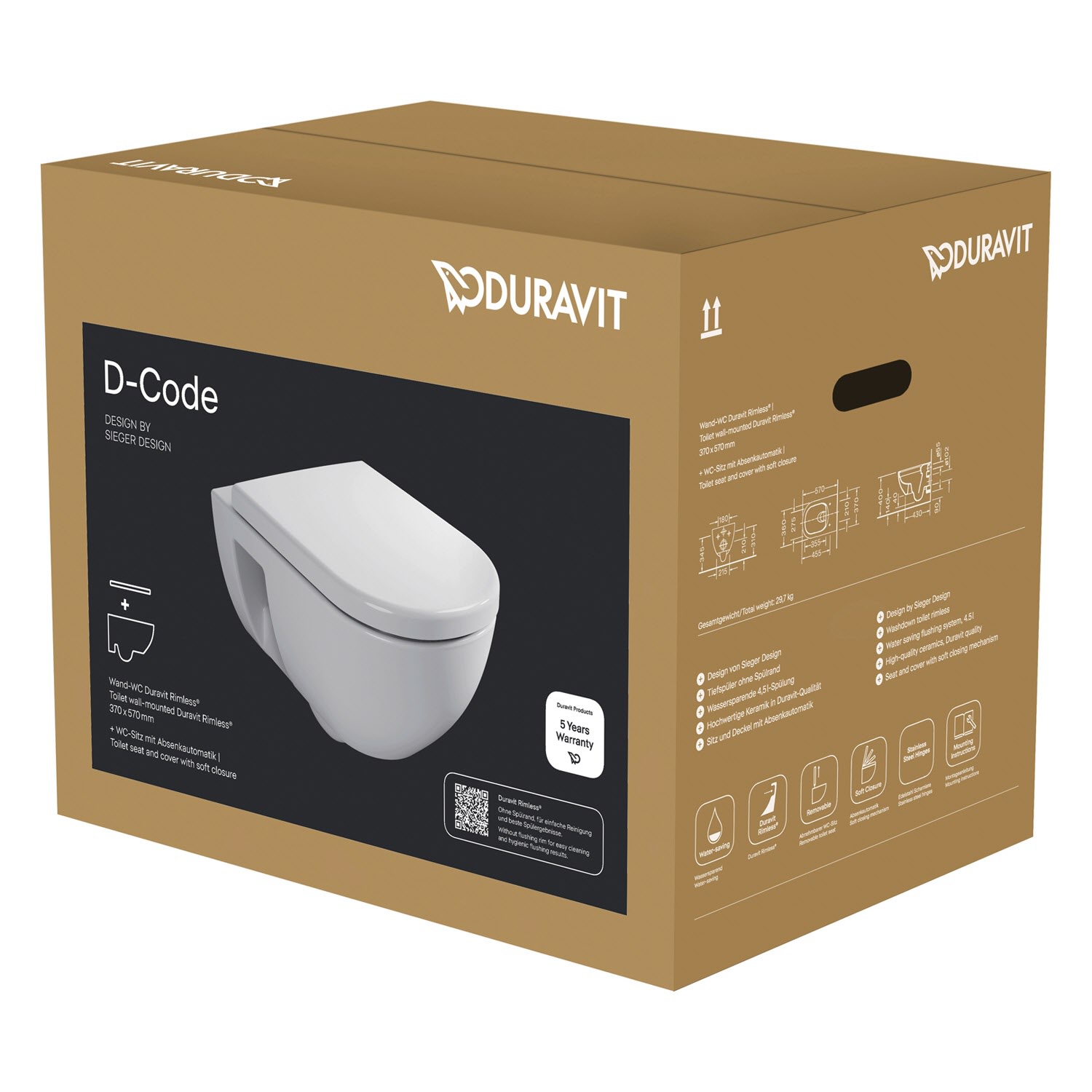 - Offener Spülrand Duravit Rimless® mit dynamischer Wasserführung: Hygienisch einwandfreie Spülergebnisse auch bei kleinen Wassermengen