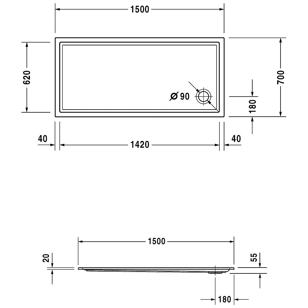 Duravit Starck Slimline Duschwanne Rechteck 150 x 70 cm
