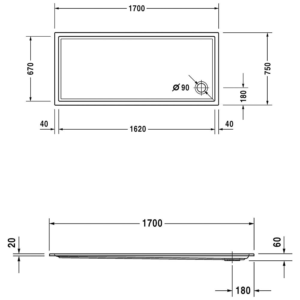 Duravit Starck Slimline Duschwanne Rechteck 170 x 75 cm