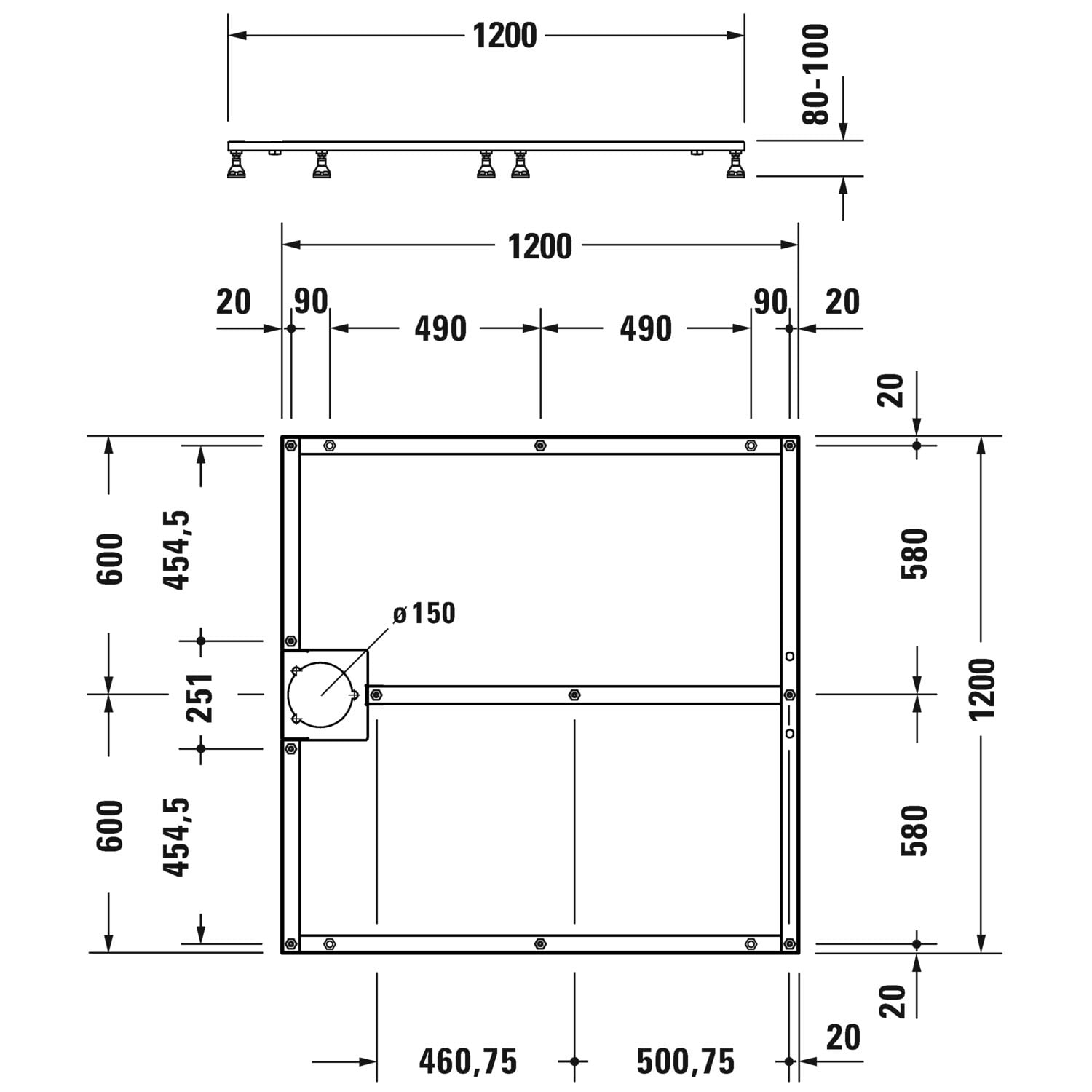 Duravit Fußgestell für Stonetto Duschwanne 120 x 120 cm