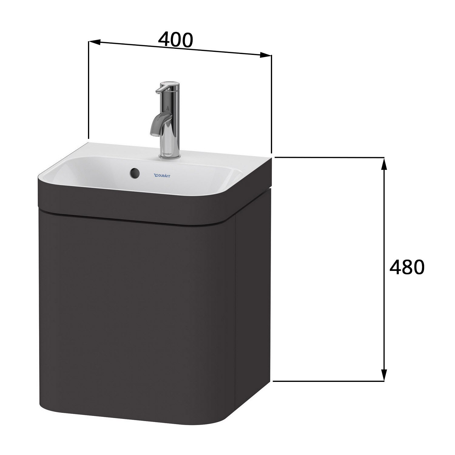 Duravit Happy D.2 Plus c-bonded Waschtisch mit 1 Hahnloch, mit Unterschrank Tür links, 40 x 36 cm