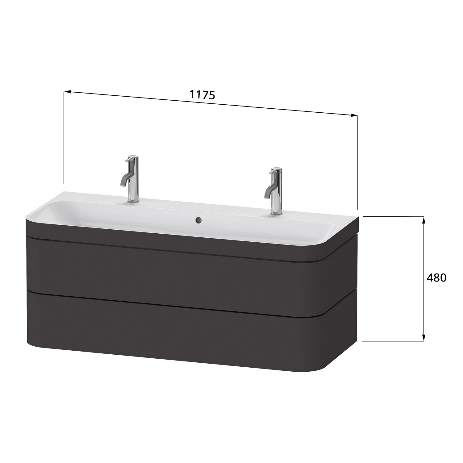 Duravit Happy D.2 Plus c-bonded Waschtisch mit 2x 1 Hahnloch, mit Unterschrank 117,5 x 49 cm