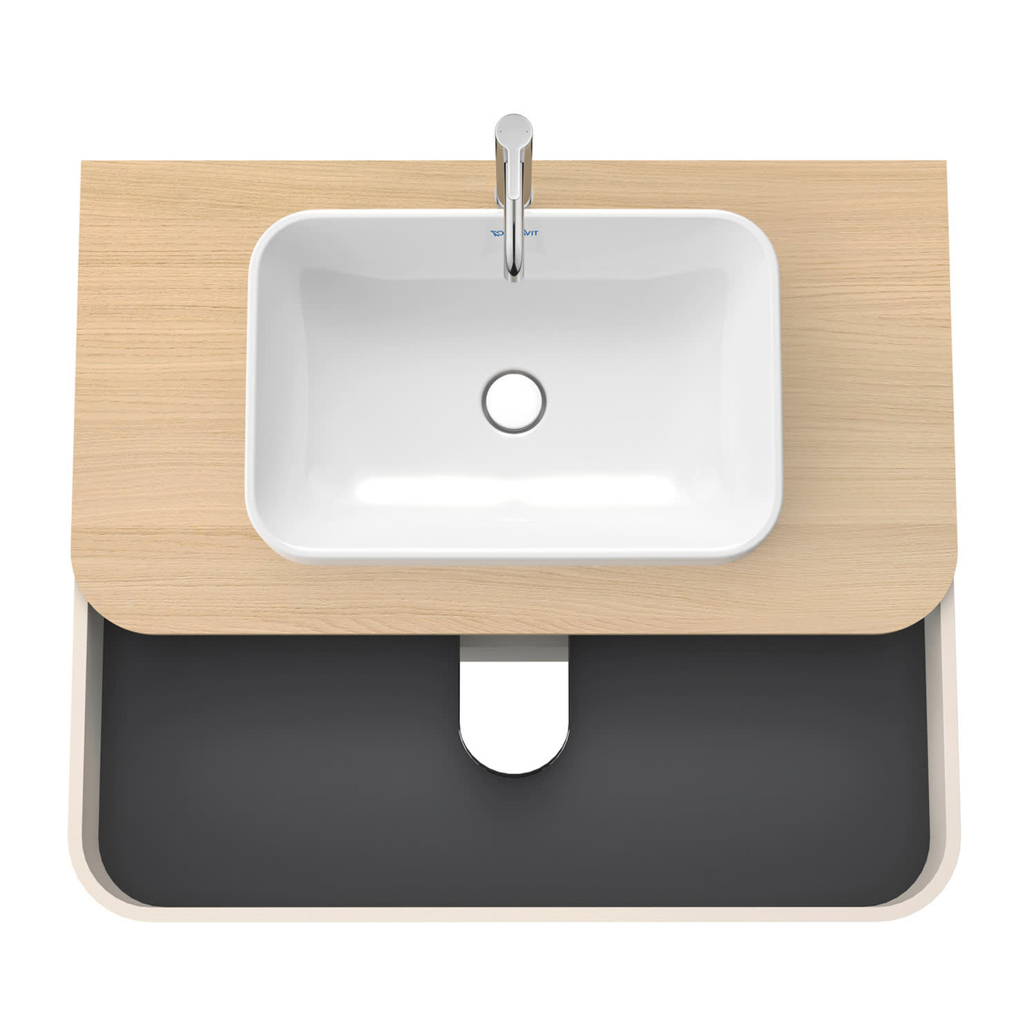 Modern und elegant präsentiert sich der wandhängende Konsolenwaschtischunterbau aus der Happy D.2 Plus Serie by sieger design. Zwei großzügige grifflose Vollauszüge mit hoher Tragfähigkeit Das unverwechselbare Design des Möbels mit seinen fein abgerundeten Ecken wird in den dazu passenden Aufsatzbecken konsequent weitergeführt. Sowohl für den Korpus wie auch für die dazu passende Konsolenplatte stehen zahlreiche Oberflächen- und Farbgestaltungen zur Auswahl – von unifarben bis raffiniert zweifarbig. Optional kann werkseitig ein cleveres Einrichtungssystem aus Massivholz sowie eine integrierte Innenbeleuchtung verbaut werden.