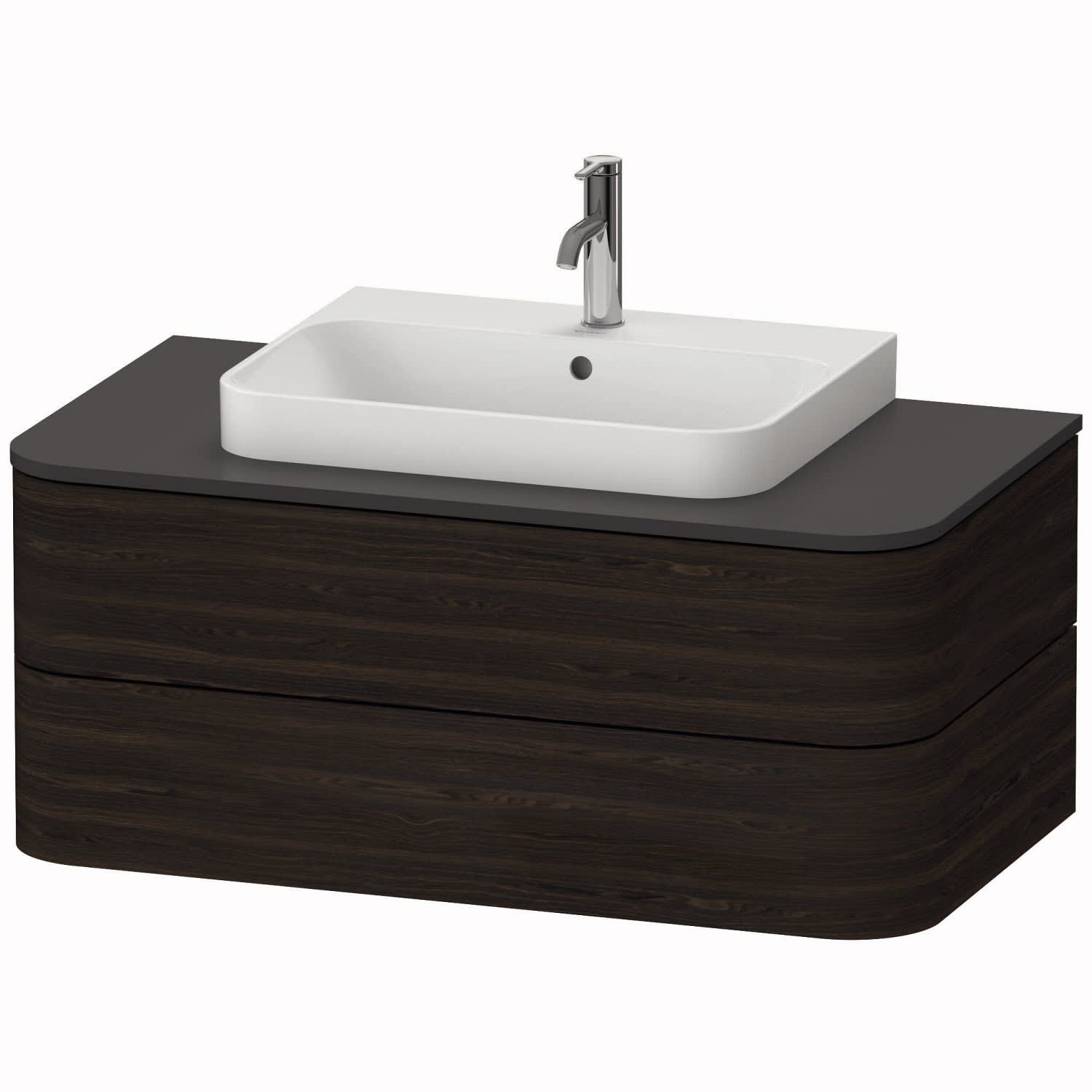 Modern und elegant präsentiert sich der wandhängende Konsolenwaschtischunterbau aus der Happy D.2 Plus Serie by sieger design. Zwei großzügige grifflose Vollauszüge mit hoher Tragfähigkeit Das unverwechselbare Design des Möbels mit seinen fein abgerundeten Ecken wird in den dazu passenden Aufsatzbecken konsequent weitergeführt. Sowohl für den Korpus wie auch für die dazu passende Konsolenplatte stehen zahlreiche Oberflächen- und Farbgestaltungen zur Auswahl – von unifarben bis raffiniert zweifarbig. Optional kann werkseitig ein cleveres Einrichtungssystem aus Massivholz sowie eine integrierte Innenbeleuchtung verbaut werden.