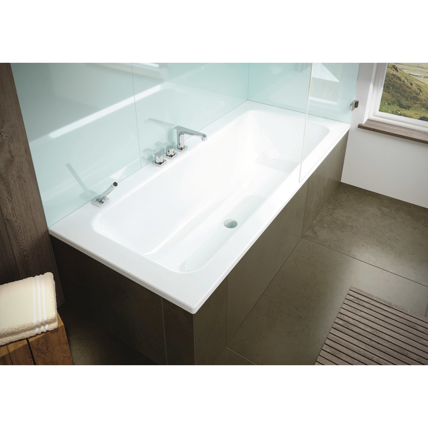 Die PURO SET WIDE LINKS Badewanne von KALDEWEI vereint das Baden und Duschen auf eine völlig neue, innovative Weise. Ihr mittig platzierter Ab- und Überlauf dient nicht nur als elegantes Gestaltungselement, sondern schafft auch großzügige Bewegungsfreiheit beim Duschen. Die reduzierte Wannentiefe ermöglicht ein bequemes Ein- und Aussteigen und sorgt gleichzeitig für einen sparsamen Wasserverbrauch beim Baden, was die PURO SET WIDE zu einer besonders nachhaltigen Wahl macht. Zusätzlich ist die Badewanne einseitig mit Grifflochbohrungen ausgestattet, die eine einfache und sichere Anbringung eines Griffes ermöglicht.