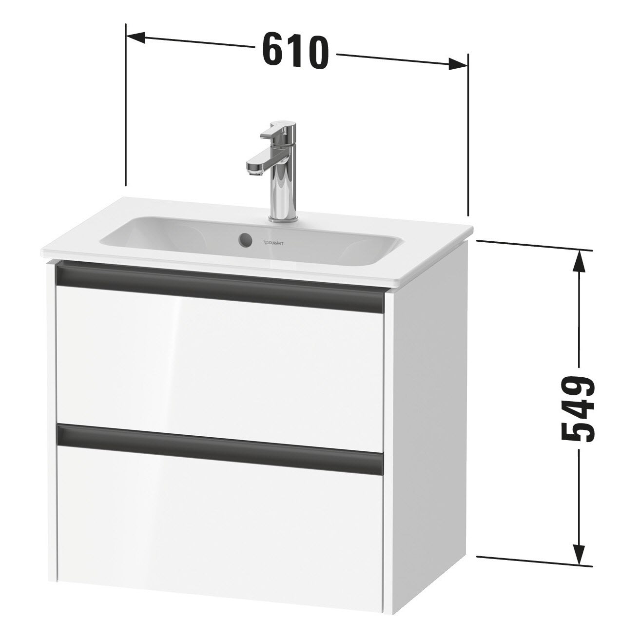 Duravit Ketho.2 Waschtischunterbau wandhängend Compact, 2 Auszüge, 61 cm