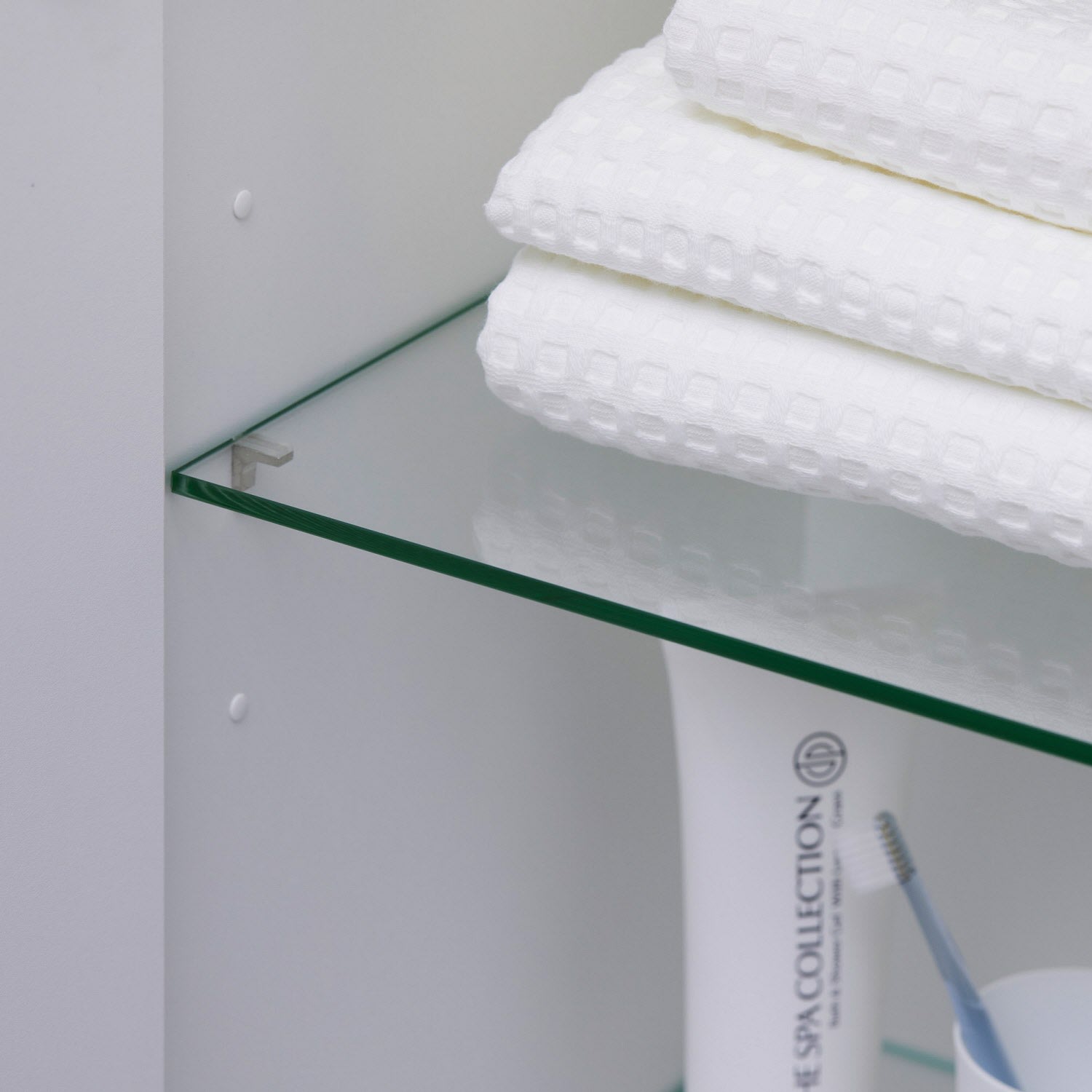 - 3 Fachböden aus Glas bieten genügend Platz zum Abstellen von Gegenständen