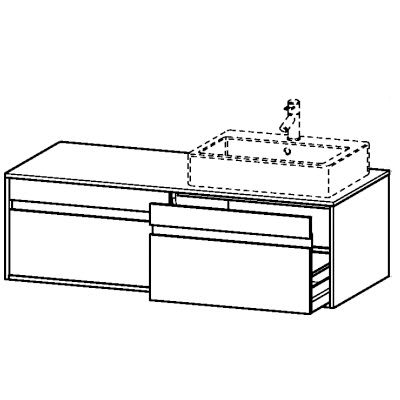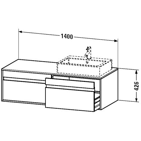 Duravit Ketho Waschtischunterbau 140 cm wandhängend, 2 Auszügen, für 1 Aufsatzwaschtisch rechts