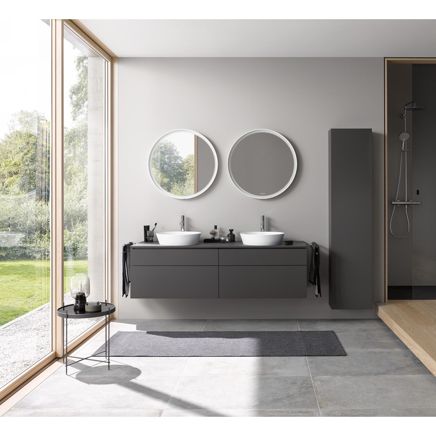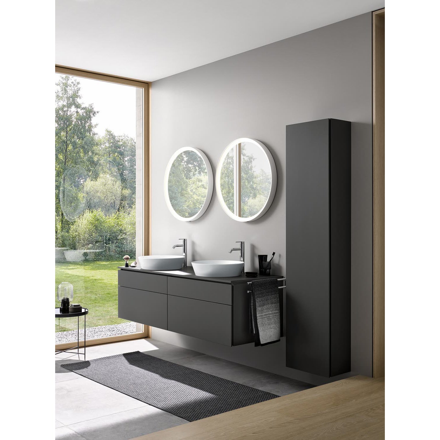 Die Duravit Hochschränke der L-Cube Serie zeichnen sich durch ihr elegantes, minimalistisches Design bei gleichzeitiger Modell-Vielfalt aus: Korpus und Tür (wahlweise mit Türanschlag rechts oder links) sind in 26 Oberflächen als Dekor, Lack oder Echtholzfurnier erhältlich. Sie überzeugen nicht nur mit perfekter Optik und hochwertiger Verarbeitung, sondern ebenso durch feuchteunempfindliches Material und praktische Stauraummöglichkeiten. Innen bieten die Hochschränke vier edle Glasfachböden mit hochwertigem Aluträgersystem, die genügend Platz für die Badutensilien bieten. Da es sie in zwei unterschiedlichen Breiten und Tiefen gibt und sie sowohl wandhängend wie stehend (optional mit zusätzlichen Sockelfüßen) montiert werden können, sind sie leicht an unterschiedlichste Raumanforderungen und Bad Geometrien anpassbar.