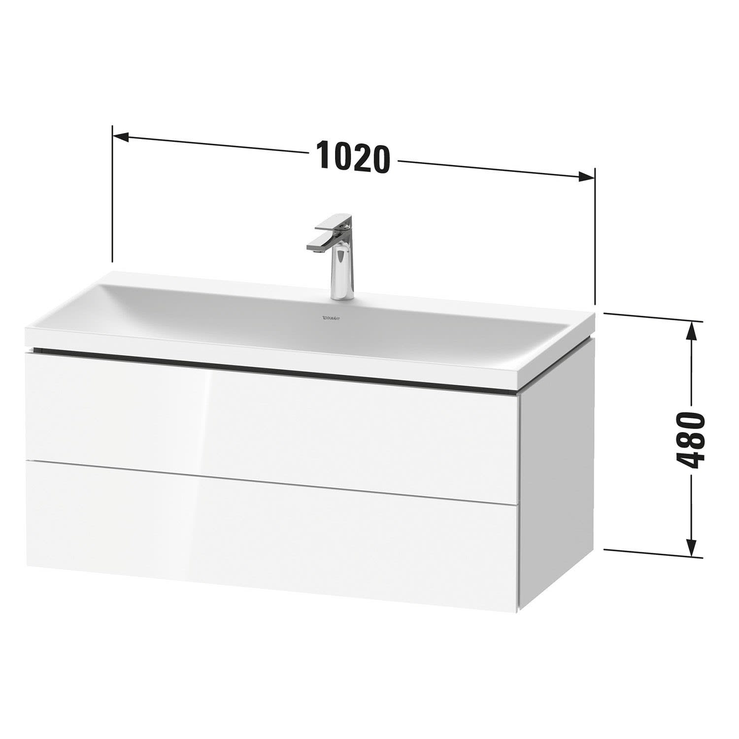 Duravit L-Cube c-shaped Möbelset mit Waschtisch ohne Hahnloch und Unterbau mit 2 Auszüge, 100 x 48 cm