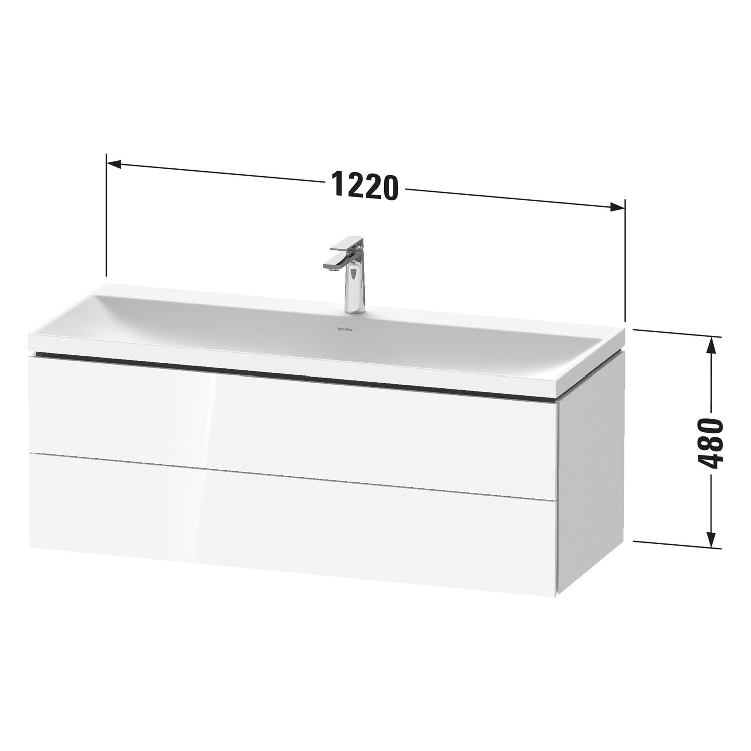 Duravit L-Cube c-shaped Möbelset mit Waschtisch ohne Hahnloch und Unterbau mit 2 Auszüge, 120 x 48 cm