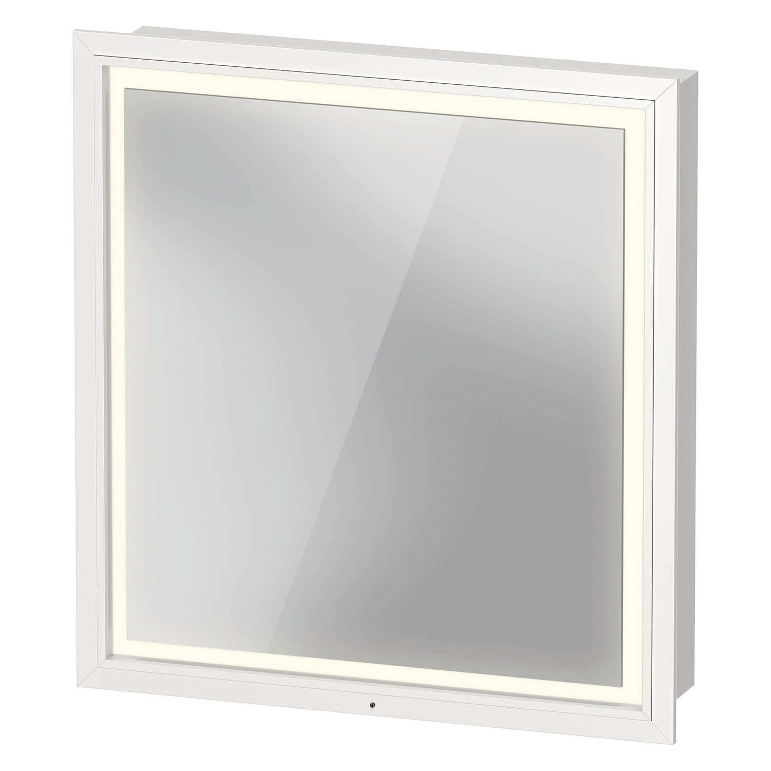 Ein richtiger Hingucker ist der L-Cube Einbau-Spiegelschrank von Duravit. Seine umlaufende, 4-seitige LED-Beleuchtung ist nicht nur funktional und energieeffizient, sondern sorgt dank Dimmfunktion und einer angenehmen, naturweißen Farbtemperatur für eine entspannte Atmosphäre. Hinter der Spiegeltür verbirgt sich viel praktischer Stauraum mit zwei Glasfachböden aus Weißglas, einer verspiegelten Rückwand sowie einer innenliegenden Steckdose mit Sicherheitsklappdeckel. Der Spiegelschrank punktet als Einbauvariante mit der filigranen Anmut eines Spiegels.