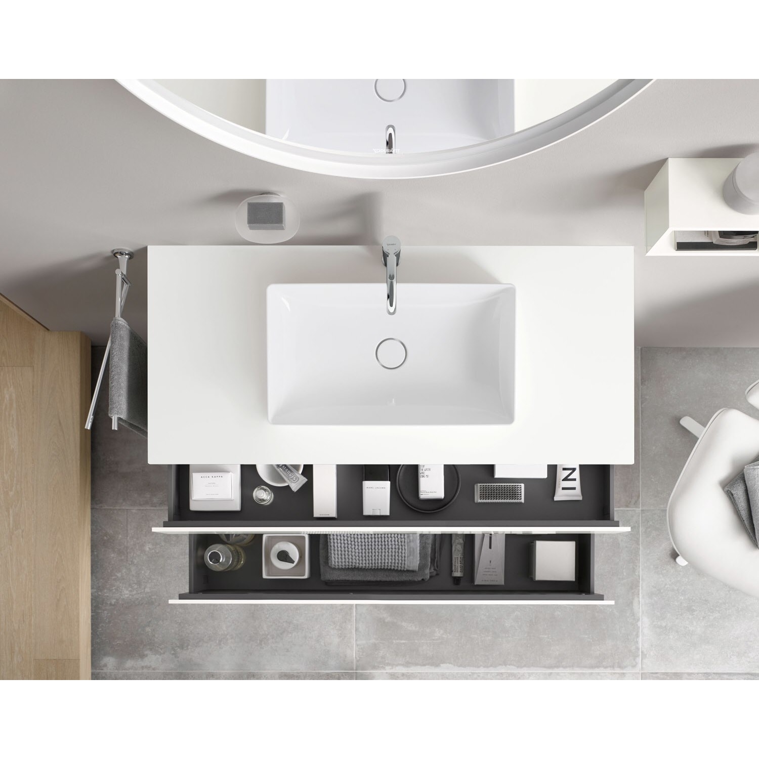 Duravit DuraSquare Aufsatzbecken mit L-Cube Konsolenwaschtischunterbau mit 2 Auszügen, 122 x 55 cm, für Waschtisch mittig