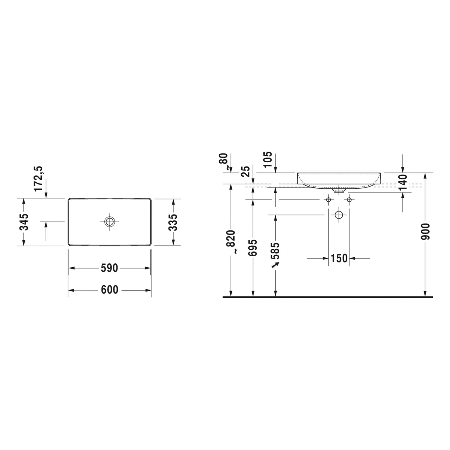- Unterseite geschliffen, daher für die Montage auf Konsolen oder Waschtischunterschränken mit Konsole geeigne