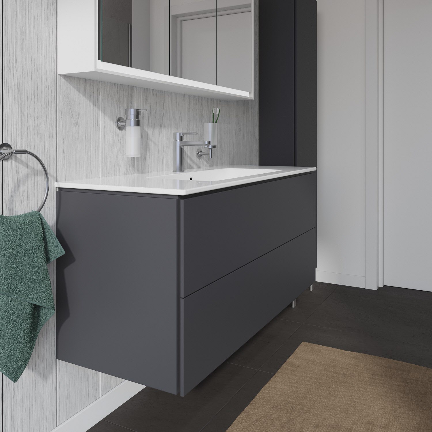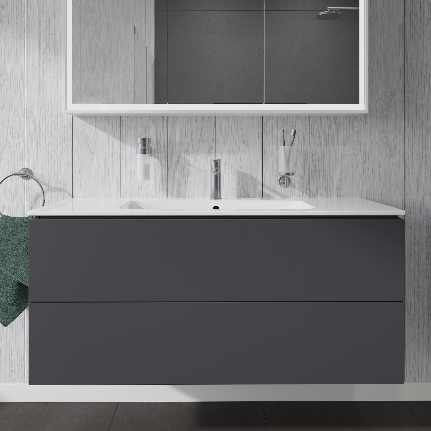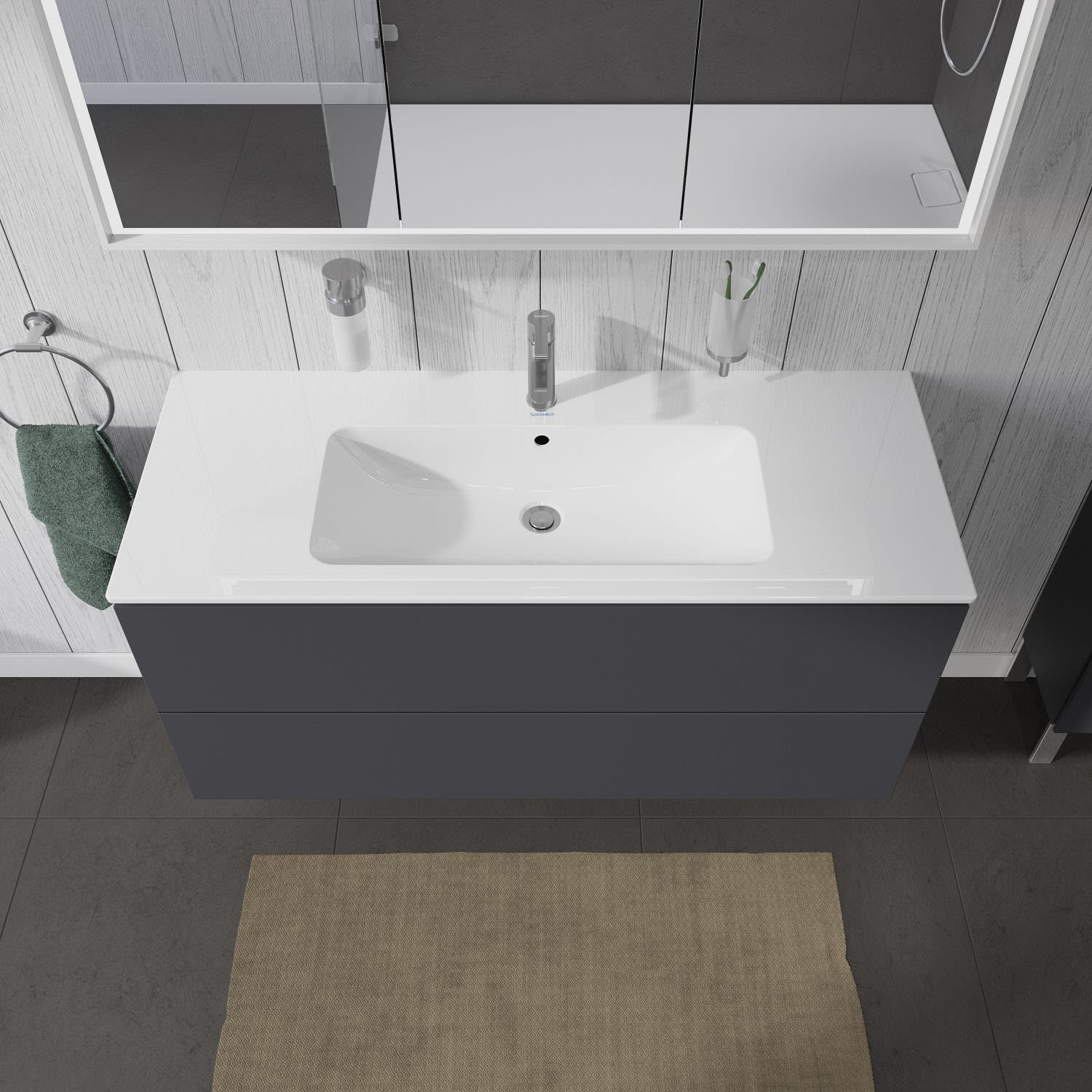 Duravit D-Neo Waschtischunterbau 118,4 x 44 cm, 1 Auszug, Griff diamantschwarz