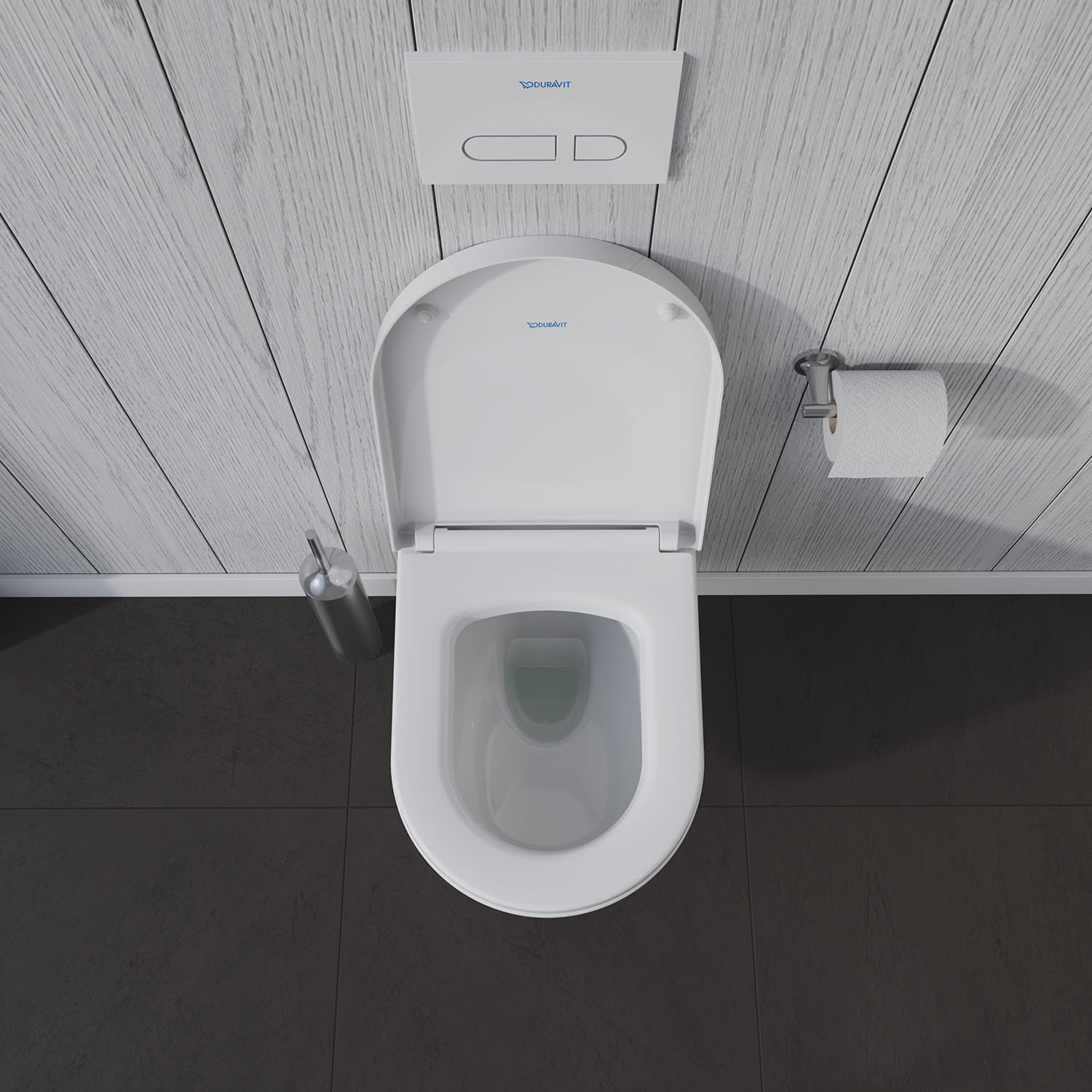 - offener Spülrand Duravit Rimless® mit dynamischer Wasserführung: hygienisch einwandfreie Spülergebnisse auch bei kleinen Wassermengen