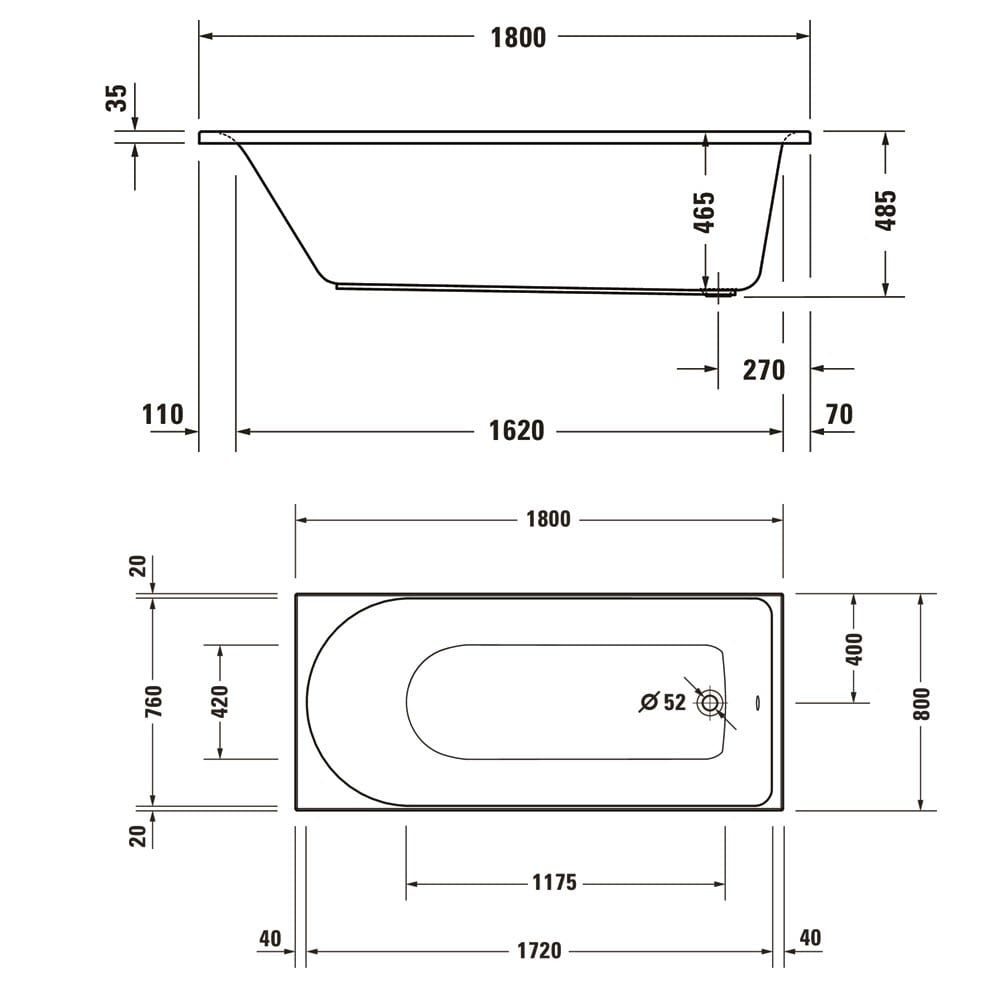 Bei Bedarf ist die Montage eines Duravit Wannengriffs für einen sicheren Ein- und Ausstieg möglich, bitte separat bestellen (Montage nur ab Werk möglich).