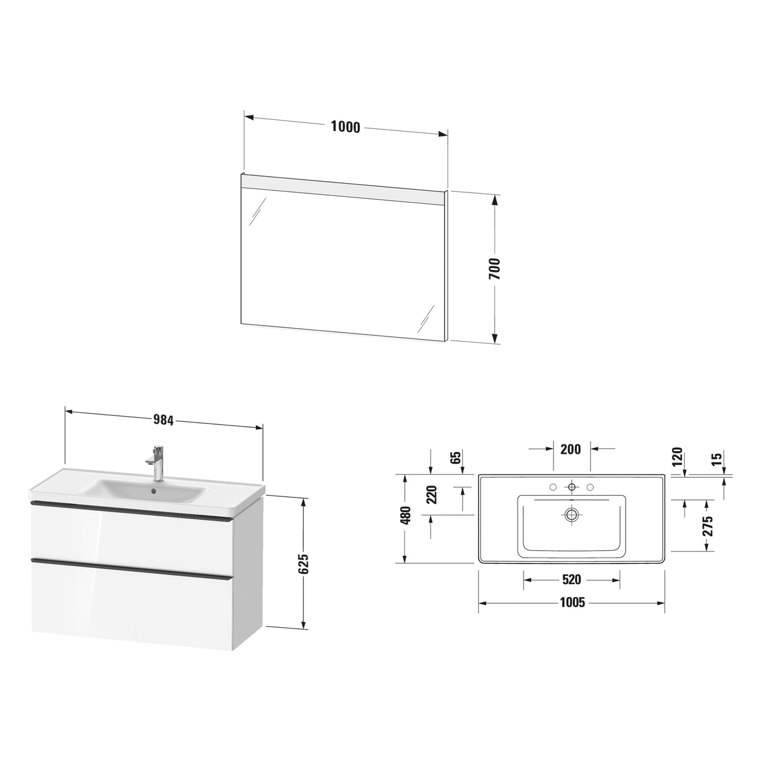 Duravit D-Neo Möbelset mit eckigem Spiegel 100,5 cm