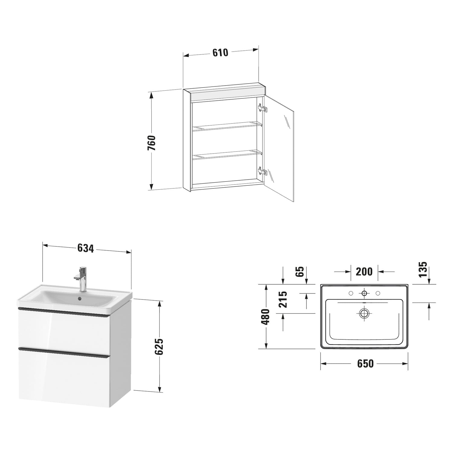 Duravit D-Neo Möbelset mit Spiegelschrank 65 cm