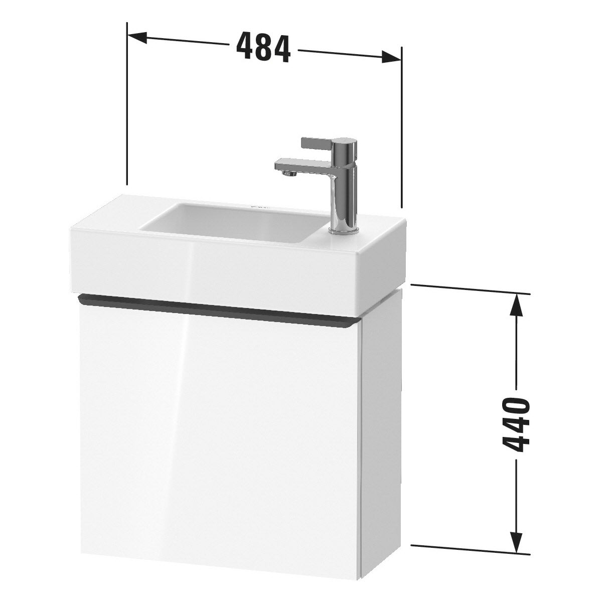 Duravit D-Neo Waschtischunterbau 48,4 x 44 cm, 1 Tür links, Griff diamantschwarz
