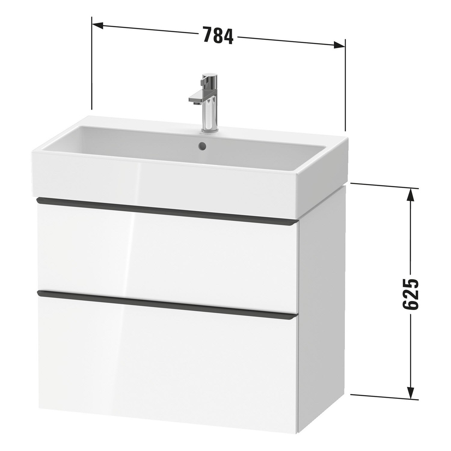 Duravit D-Neo Waschtischunterbau 78,4 x 62,5 cm, 2 Auszüge, Griff gold poliert