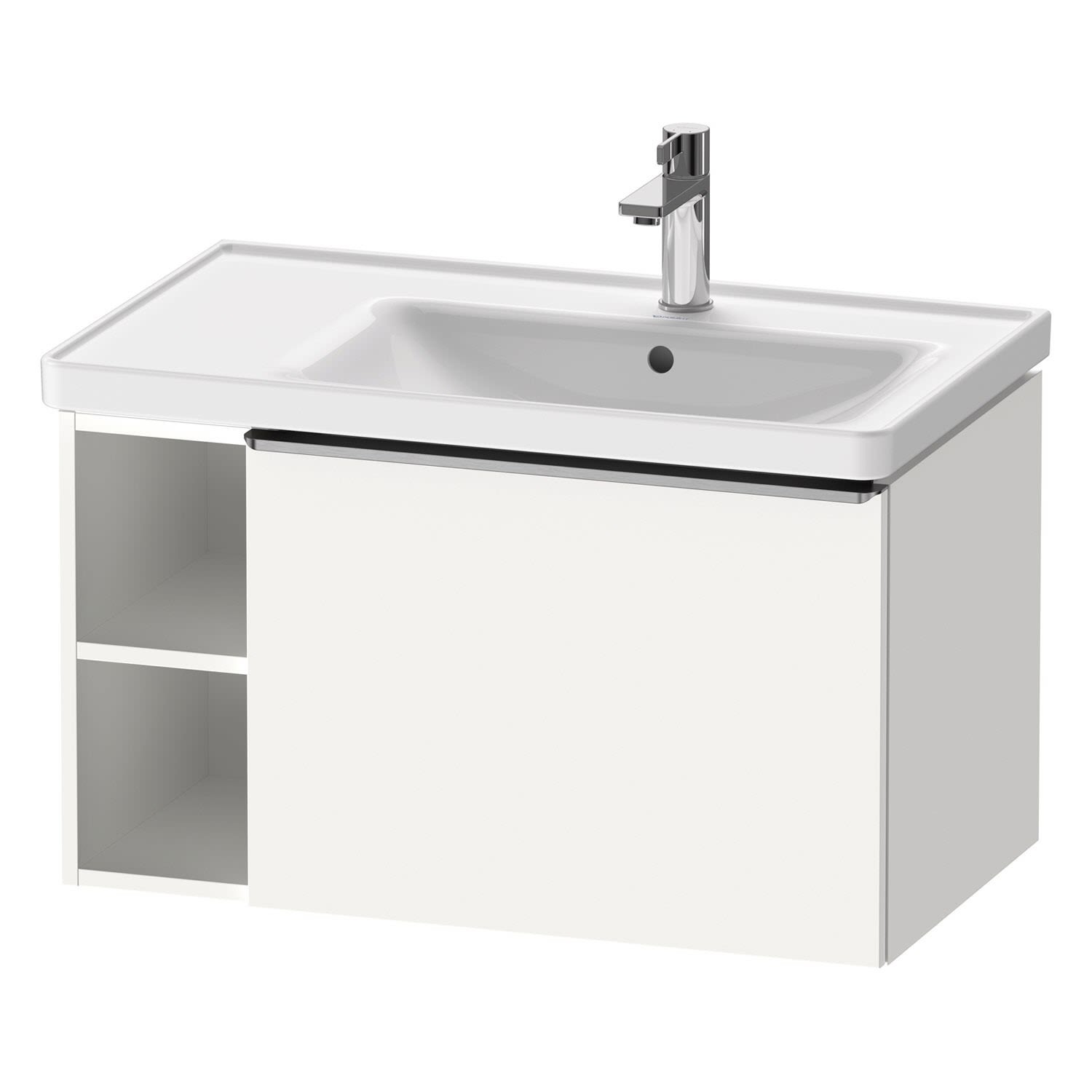 Duravit D-Neo Waschtischunterbau 78,4 x 44 cm, 1 Auszug und links offene Fächer, Griff edelstahl gebürstet