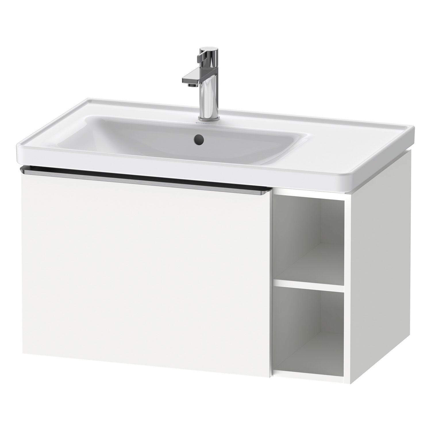 Duravit D-Neo Waschtischunterbau 78,4 x 44 cm, 1 Auszug und rechts offene Fächer, Griff edelstahl gebürstet