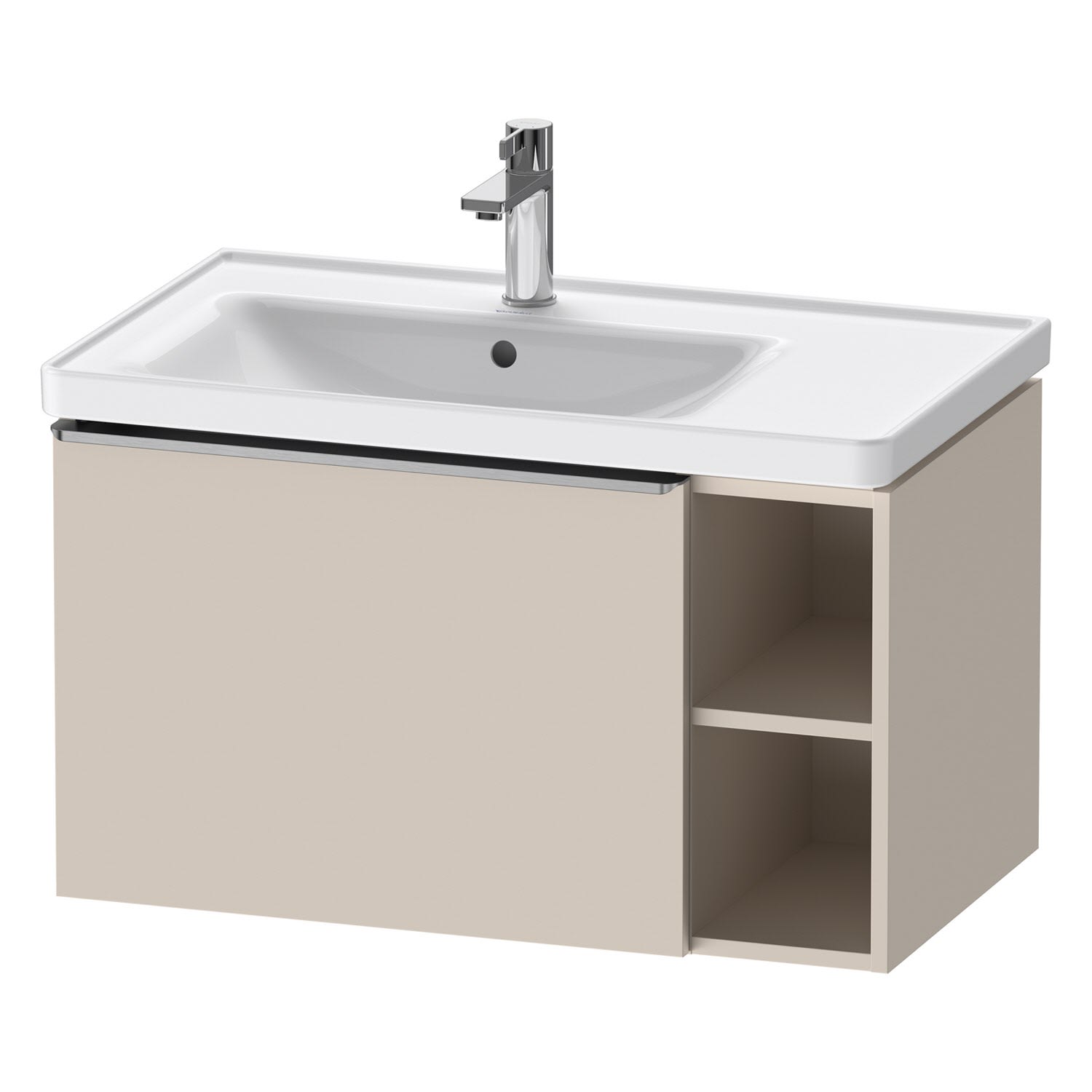 Duravit D-Neo Waschtischunterbau 78,4 x 44 cm, 1 Auszug und rechts offene Fächer, Griff edelstahl gebürstet