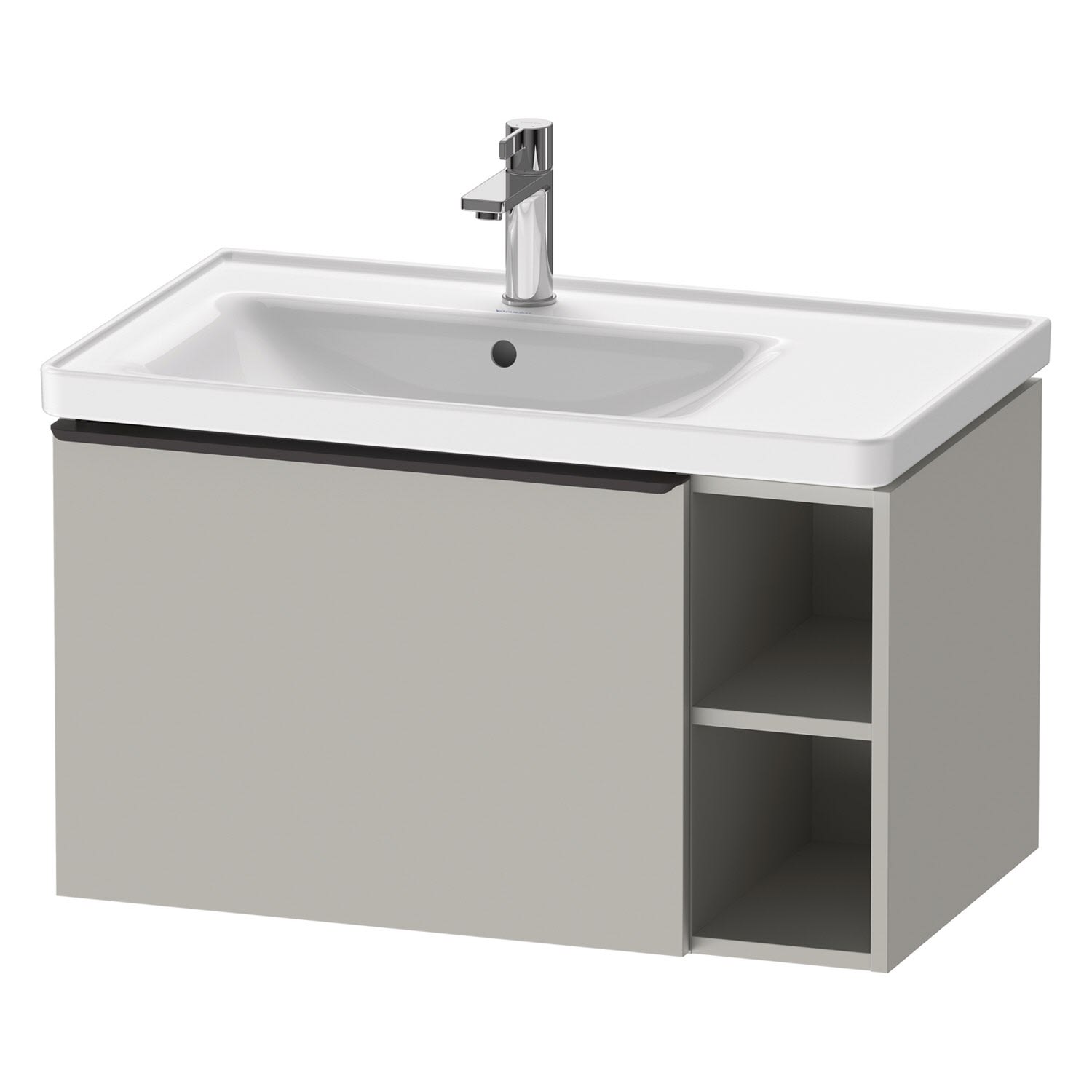 Duravit D-Neo Waschtischunterbau 78,4 x 44 cm, 1 Auszug und rechts offene Fächer, Griff diamantschwarz