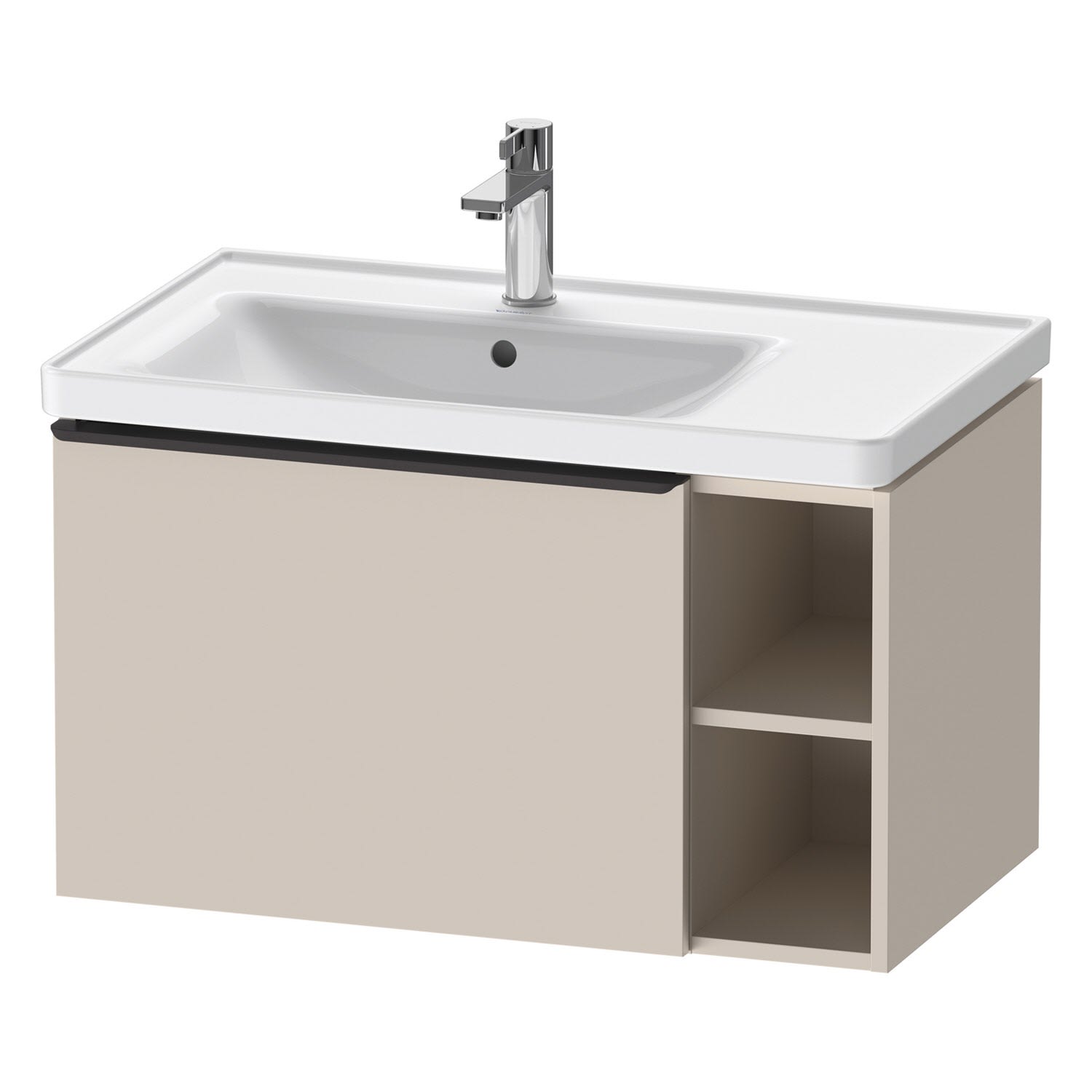 Duravit D-Neo Waschtischunterbau 78,4 x 44 cm, 1 Auszug und rechts offene Fächer, Griff diamantschwarz