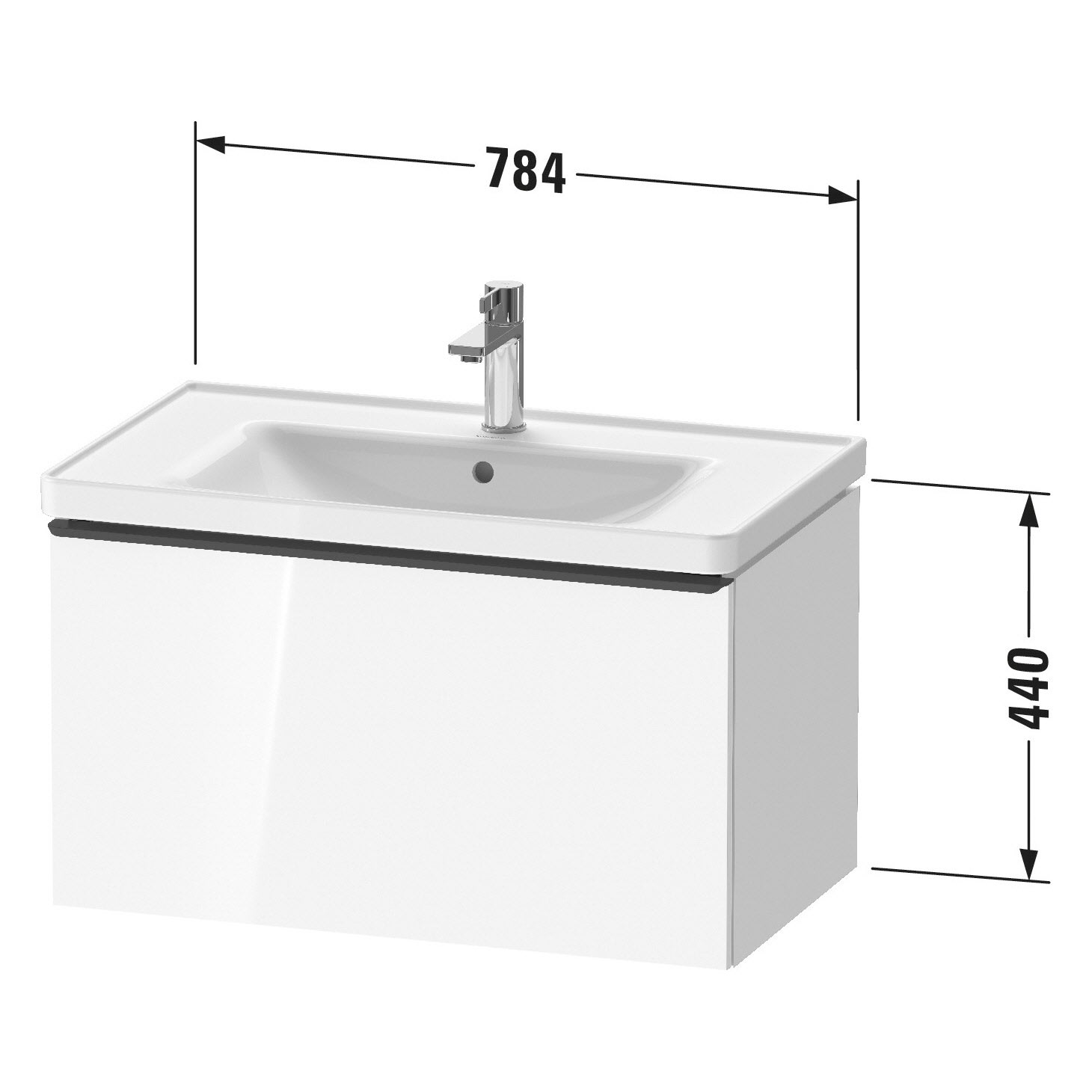 Duravit D-Neo Waschtischunterbau 78,4 x 44 cm, 1 Auszug, Griff diamantschwarz