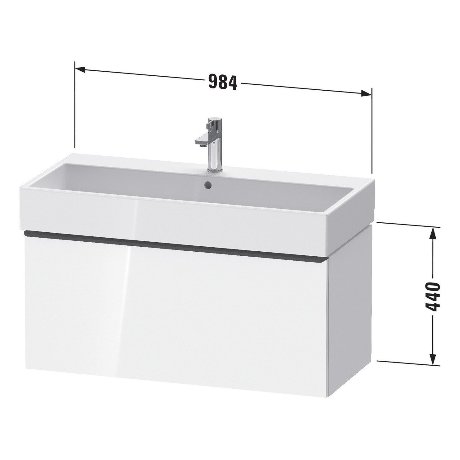 Duravit D-Neo Waschtischunterbau 98,4 x 44 cm, 1 Auszug, Griff edelstahl gebürstet