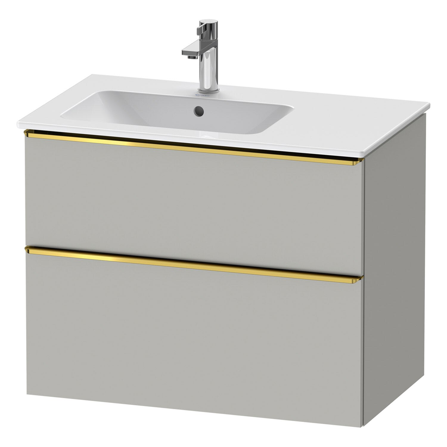 Duravit D-Neo Waschtischunterbau für Becken links 81 x 62,5 cm, 2 Auszüge, Griff gold poliert