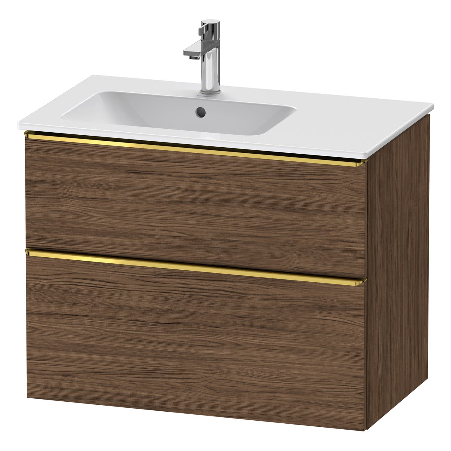 Duravit D-Neo Waschtischunterbau für Becken links 81 x 62,5 cm, 2 Auszüge, Griff gold poliert