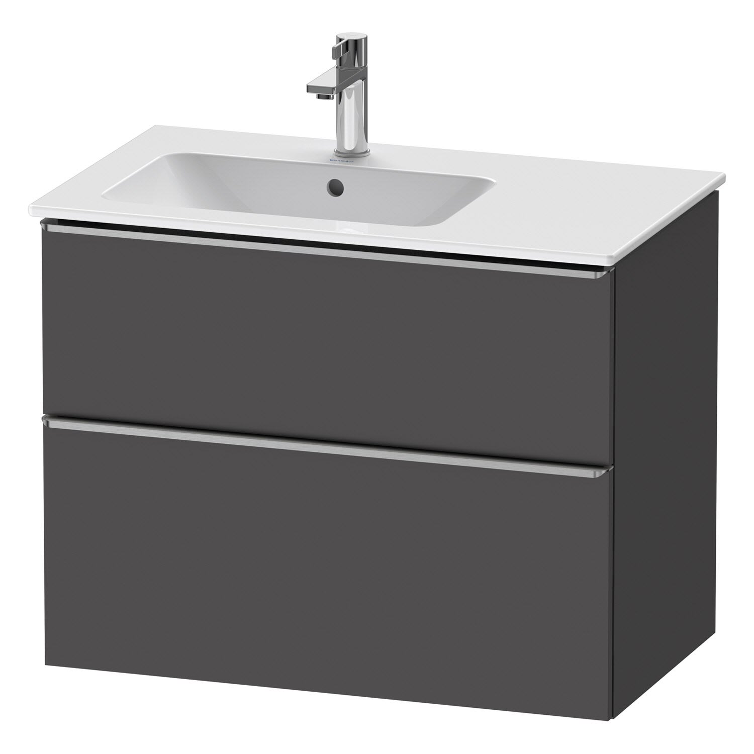 Duravit D-Neo Waschtischunterbau für Becken links 81 x 62,5 cm, 2 Auszüge, Griff edelstahl gebürstet