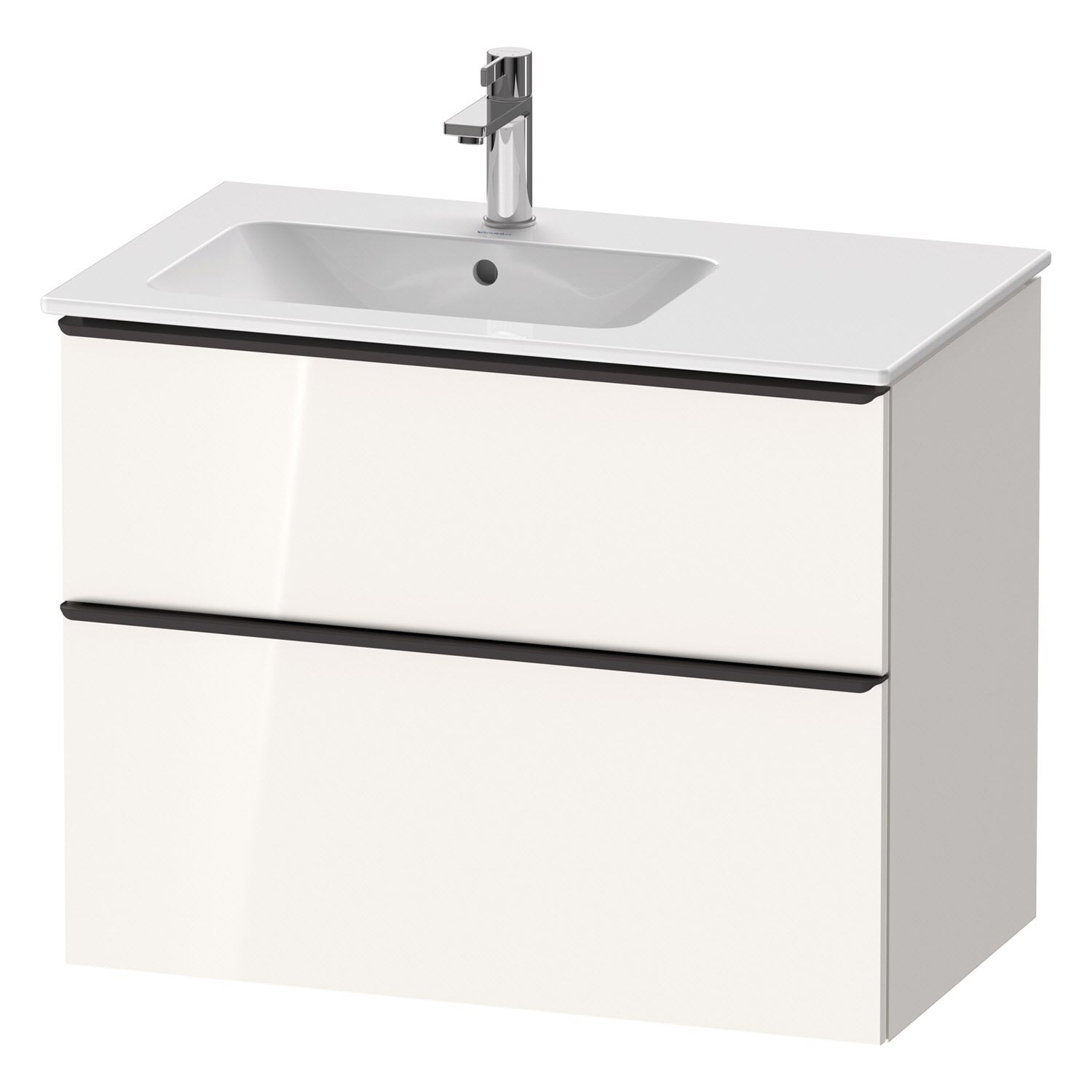 Duravit D-Neo Waschtischunterbau für Becken links 81 x 62,5 cm, 2 Auszüge, Griff diamantschwarz