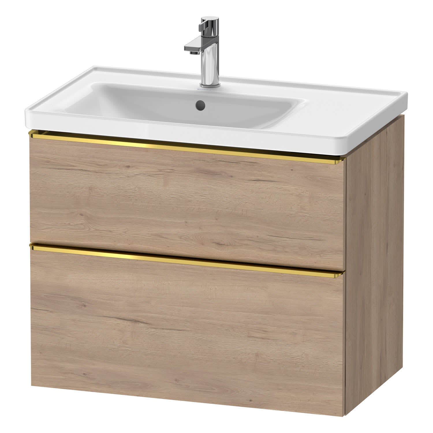Duravit D-Neo Waschtischunterbau für Becken links 78,4 x 62,5 cm, 2 Auszüge, Griff gold poliert