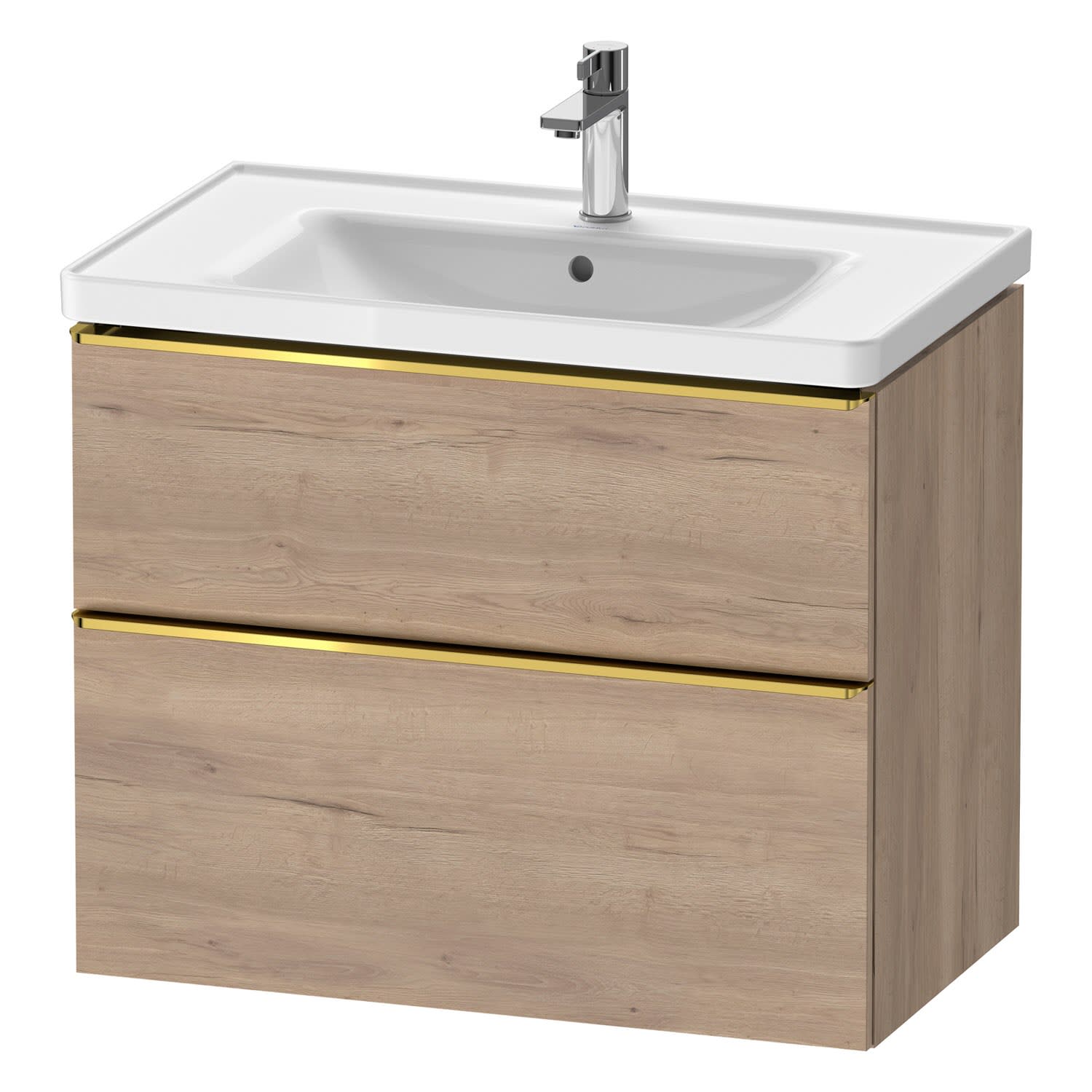 Duravit D-Neo Waschtischunterbau für Becken mittig 78,4 x 62,5 cm, 2 Auszüge, Griff gold poliert