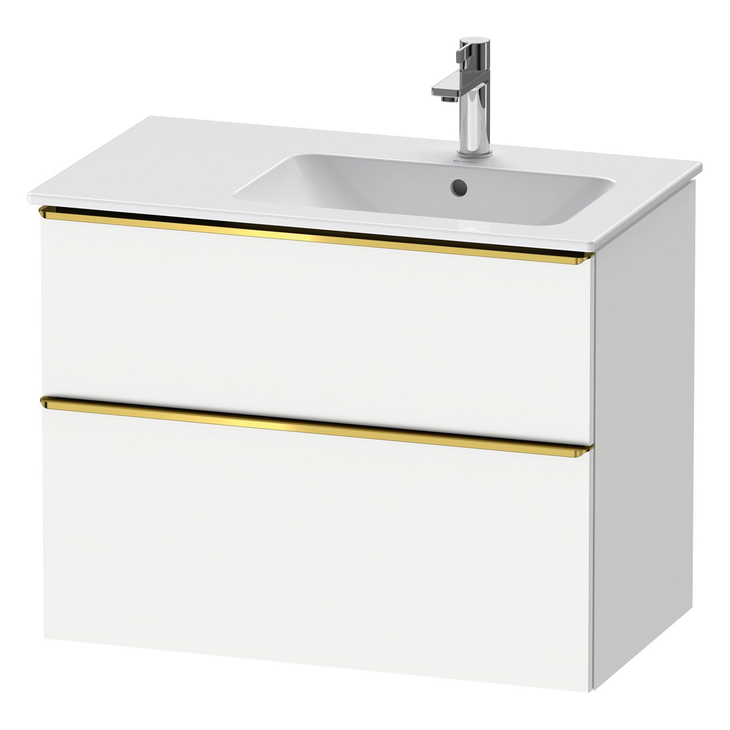 Duravit D-Neo Waschtischunterbau für Becken rechts 81 x 62,5 cm, 2 Auszüge, Griff gold poliert