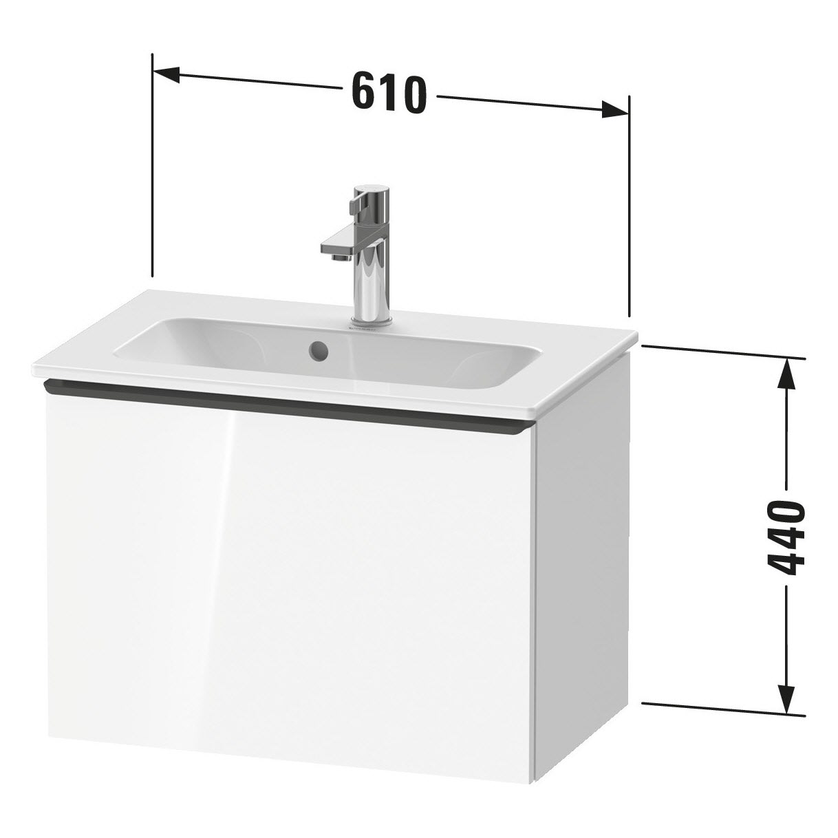 Duravit D-Neo Waschtischunterbau Compact 61 x 44 cm, 1 Auszug, Griff diamantschwarz