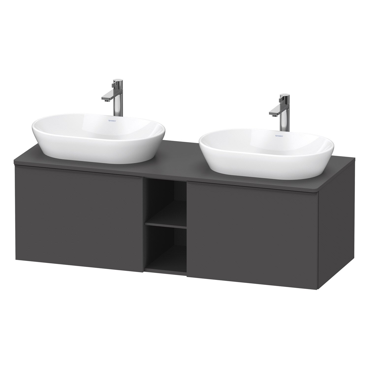 Duravit D-Neo Konsolenwaschtischunterbau für 2 Waschtische 140 x 45,9 cm, 2 Auszüge, Griff diamantschwarz