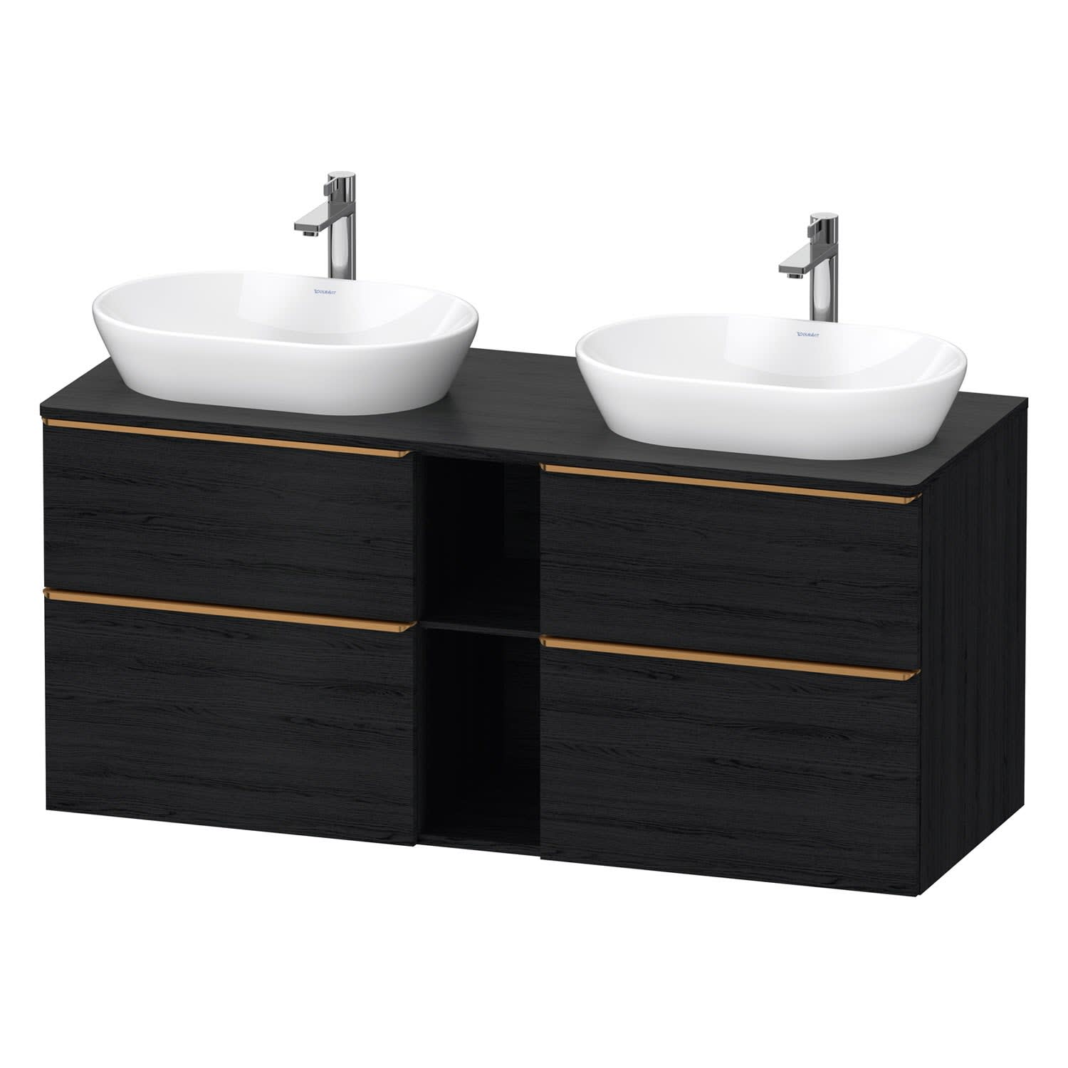 Duravit D-Neo Konsolenwaschtischunterbau für 2 Waschtische 140 x 66,4 cm, 4 Auszüge, Griff bronze gebürstet