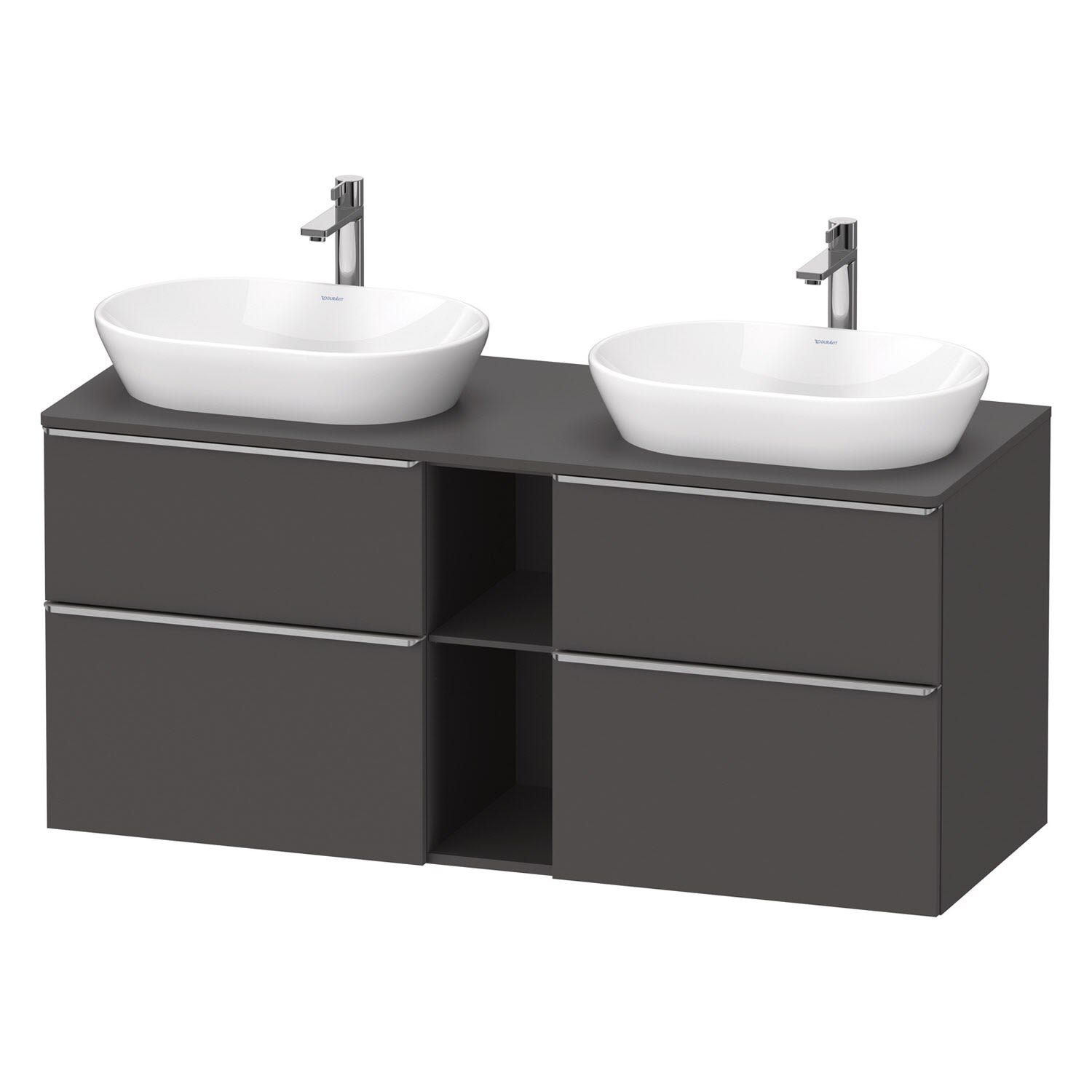 Duravit D-Neo Konsolenwaschtischunterbau für 2 Waschtische 140 x 66,4 cm, 4 Auszüge, Griff edelstahl gebürstet